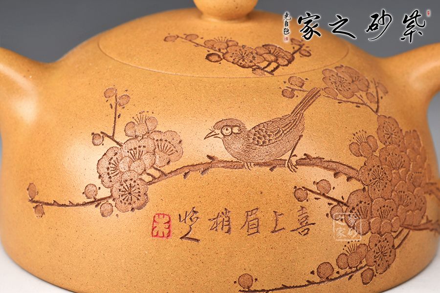 此外,壺身由梅王朱炳浩愛(ài)女朱芊芊陶刻喜鵲、梅花,兩位名家精工臻品,值以收藏品賞。