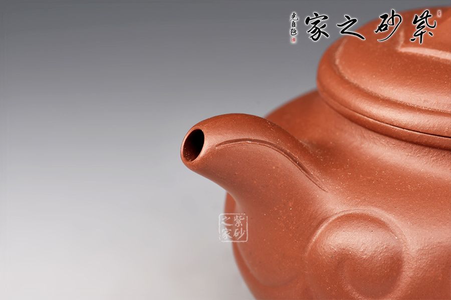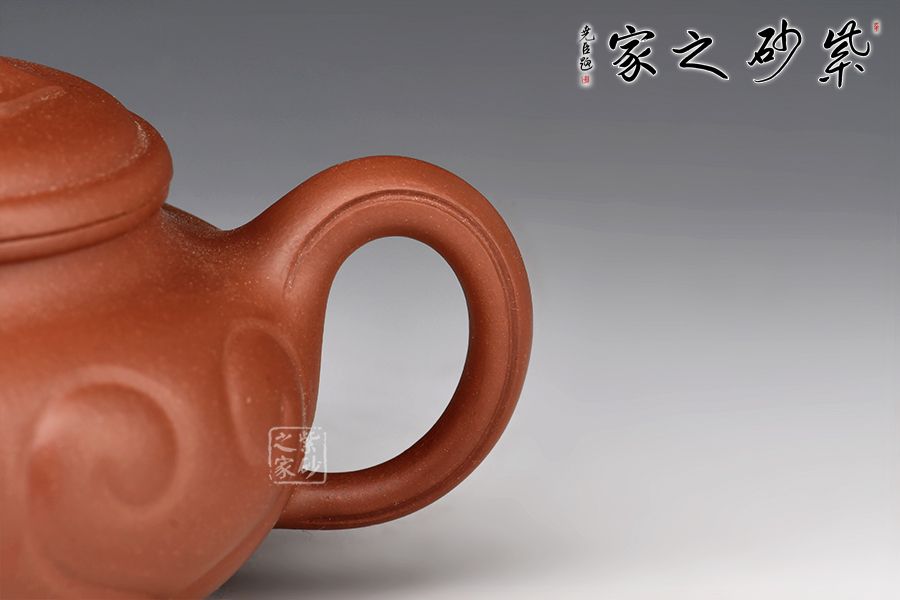 壺把勻勢(shì)而起,且與壺身如意貫氣,壺鈕為如意形橋梁式,平緩舒展合體。