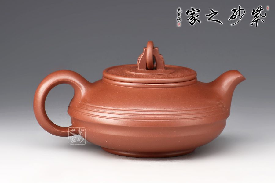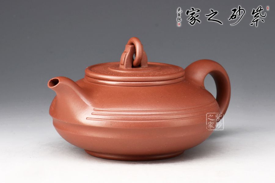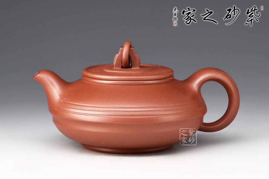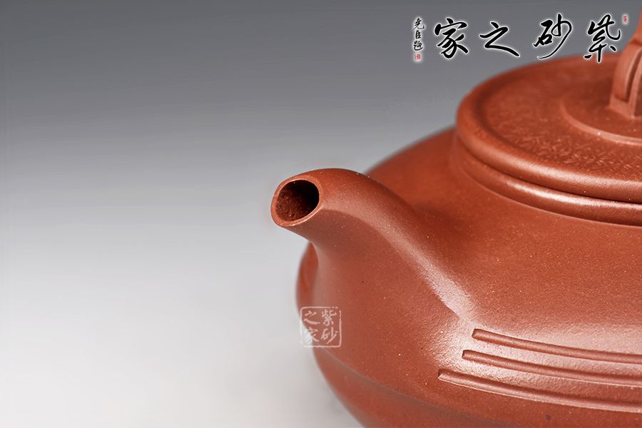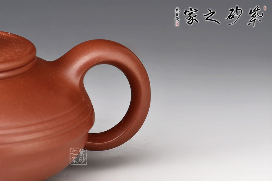 此作主體造型為圓器形,整器大氣渾厚、壺韻飽滿、色調(diào)沉穩(wěn),稍加泡養(yǎng)即顯油脂般光澤,盡顯紫砂風(fēng)韻。壓蓋設(shè)計(jì),嚴(yán)絲合縫,壺鈕設(shè)計(jì)獨(dú)特,圓環(huán)裝飾,方便拿捏。整個壺體于扁圓中求神韻,簡潔單純卻又盡顯大氣。流自壺腹胥伸自然,把高挑圓潤呈耳狀,與流對應(yīng)稱勢。中置幾條腰帶線將全壺提攜神韻,變化中求統(tǒng)一。