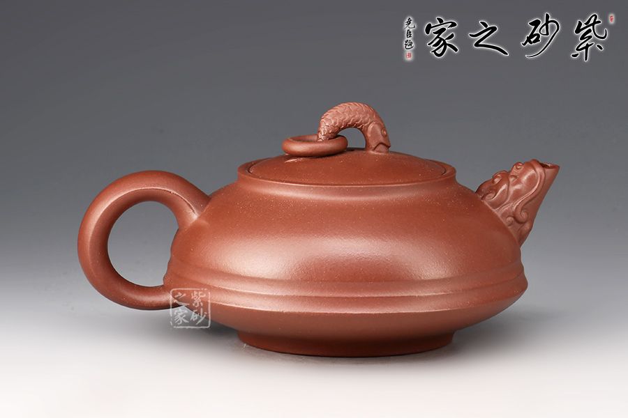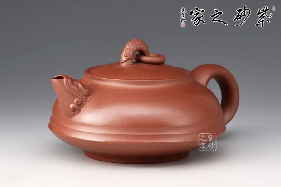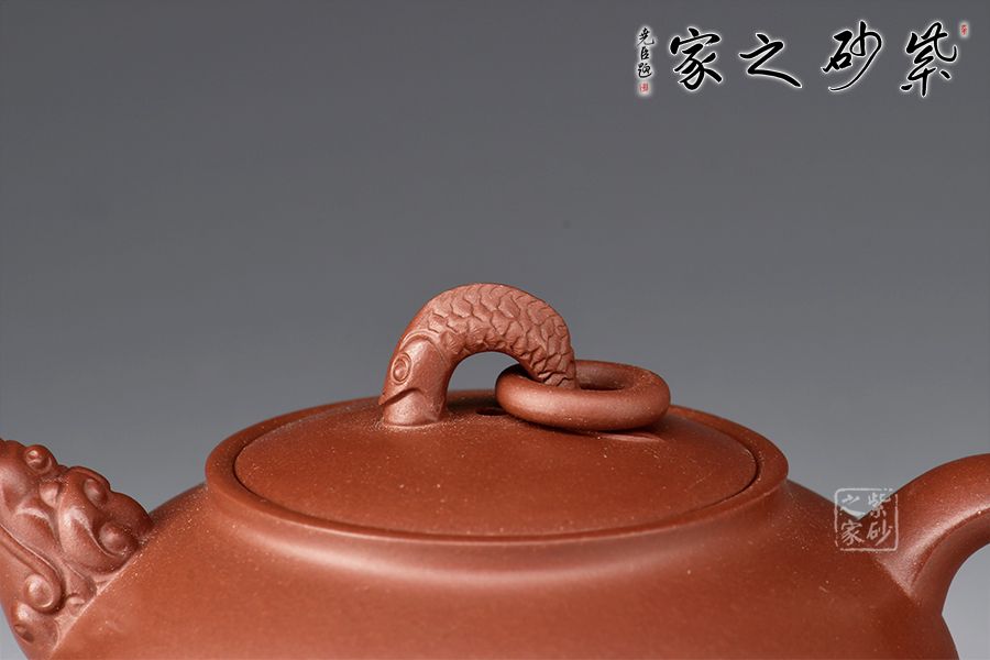 這把魚躍龍門壺,精選原礦底槽青制作而成,泥色古樸。龍頭為壺嘴,龍尾為壺把,鯉魚為壺鈕,整體造型優(yōu)雅端莊大方,寓意吉祥,是值得壺友所收藏之作品。