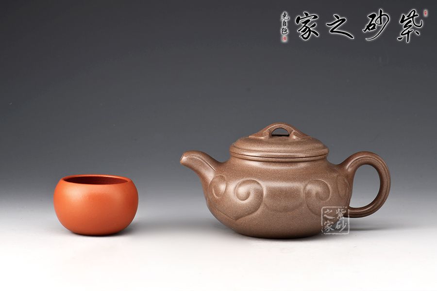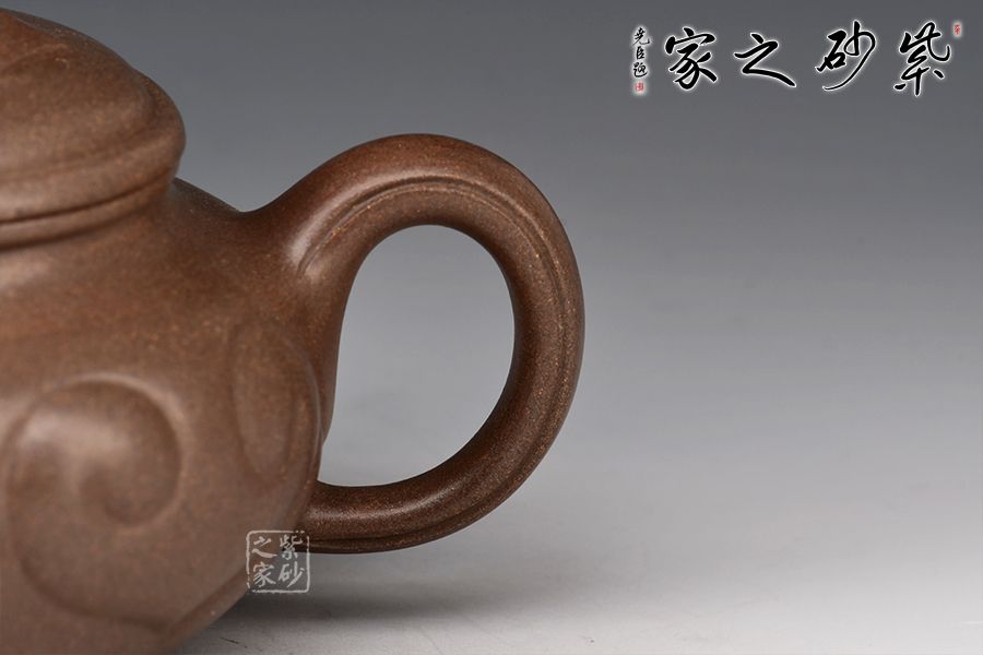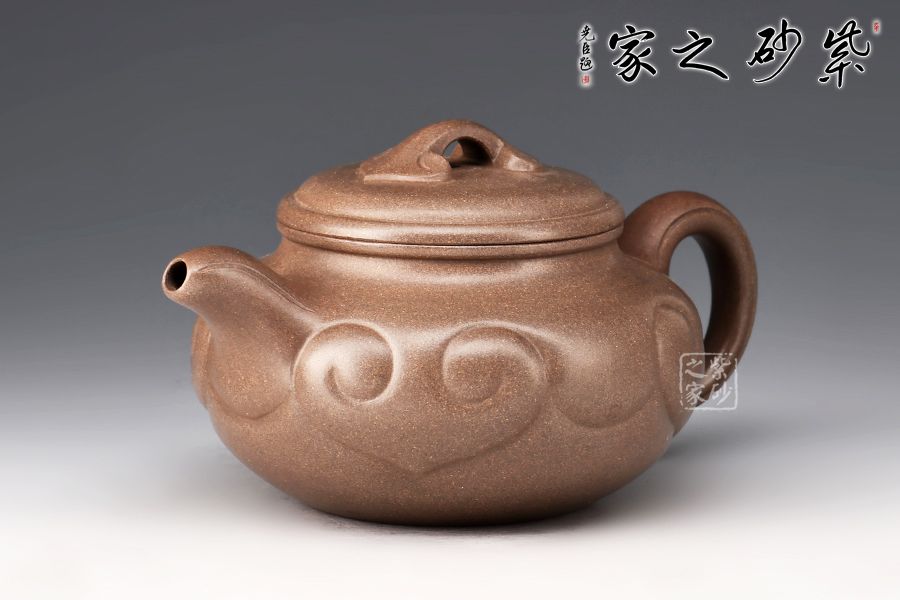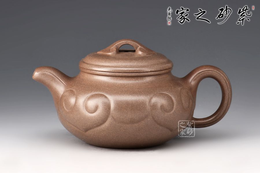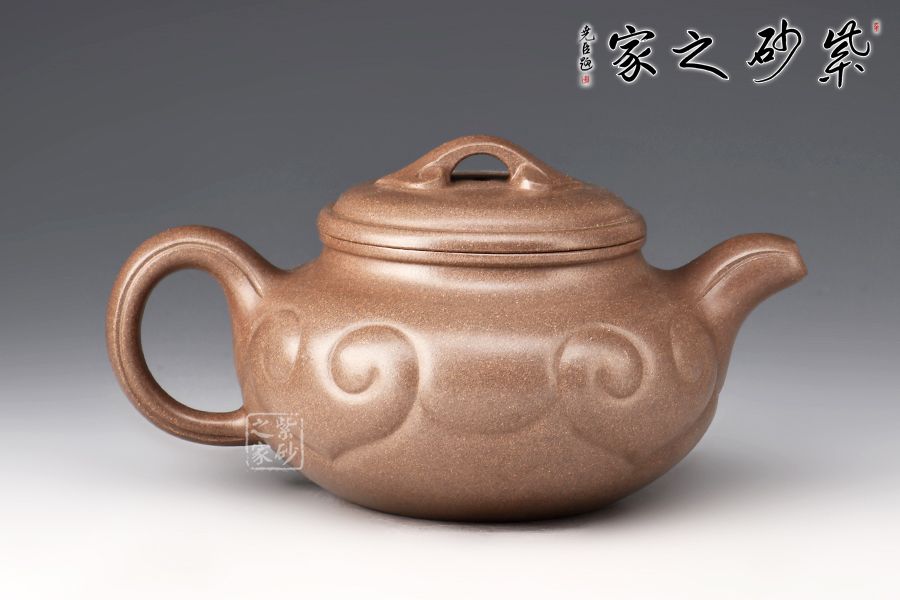 仿古如意是紫砂壺的經(jīng)典器型之一,壺身扁圓豐滿,鼓腹,短頸,壓蓋微微隆起,線條富有張力。一彎流自然胥出,出水爽利,圓圈把勻勢而起,持握舒適。壺身刻如意紋飾,紋路清晰流暢,線條延伸至流、把,氣韻貫通,橋鈕亦作如意裝飾。整器和諧統(tǒng)一,線條收展有度,造型端莊大氣,彰顯典雅之美,300cc黃金容量,實為品茗實用佳器。