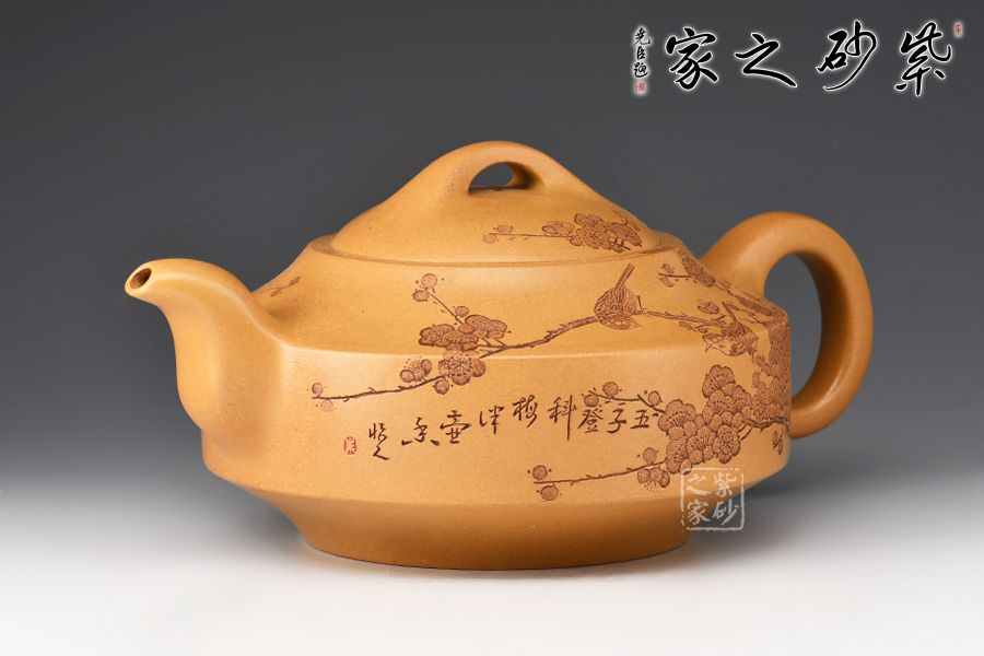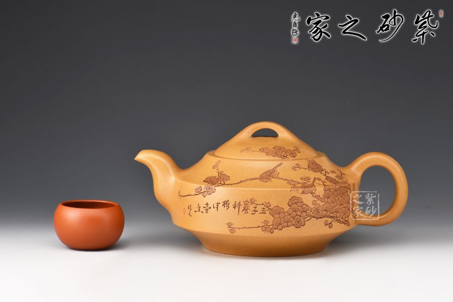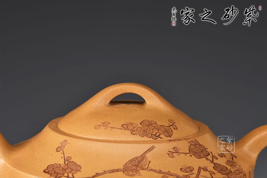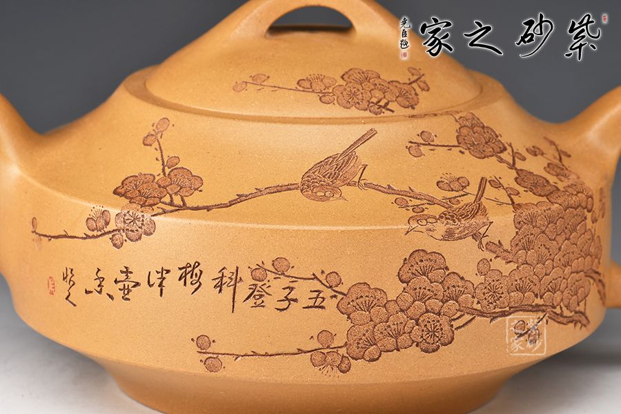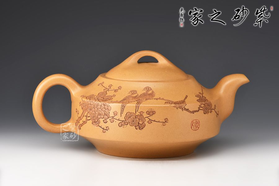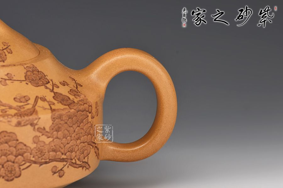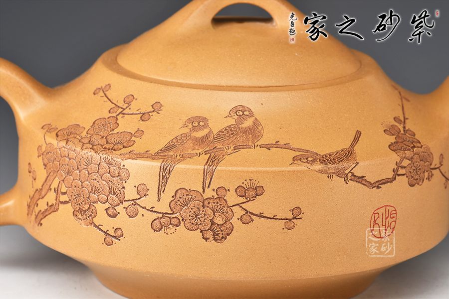 漢君壺源于曼生扁石壺之式,器型與曼生扁壺相仿,暗藏“形方智圓”的儒家風(fēng)范。整器敦龐周正,力蘊(yùn)內(nèi)中,橋鈕、彎流、圈把貫通一氣,比例精湛,古雅大方。壺身由梅王朱炳浩愛女朱芊芊陶刻梅花,兩位名家精工臻品,值以收藏品賞。