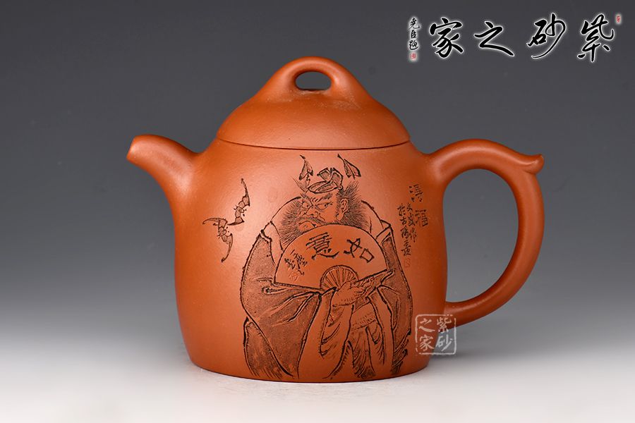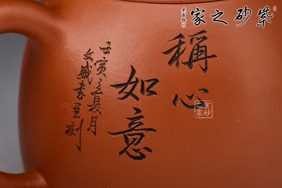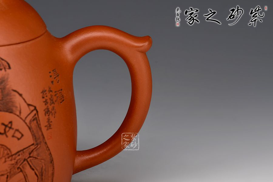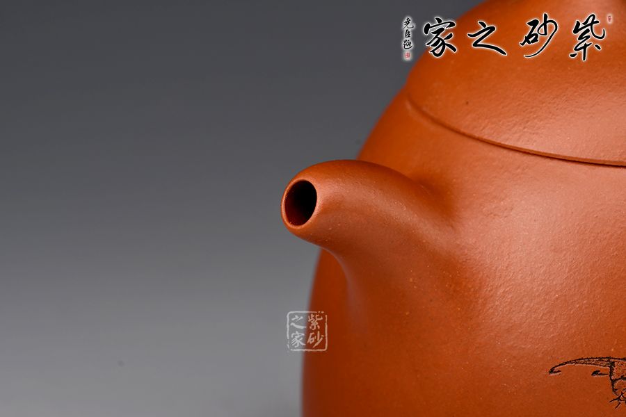 壺身若秤砣之形,高聳挺立,自下至上逐漸收斂,截蓋上下渾然一體,線條自然流暢。一彎流短而挺拔,出水爽利,環(huán)形飛把不矯不揚,儒雅端莊。整器樸素敦厚,古雅大方,480cc大品容量,實用性強(qiáng),成色佳,易泡養(yǎng),是一把高性價比的殺茶利器,值得把玩。