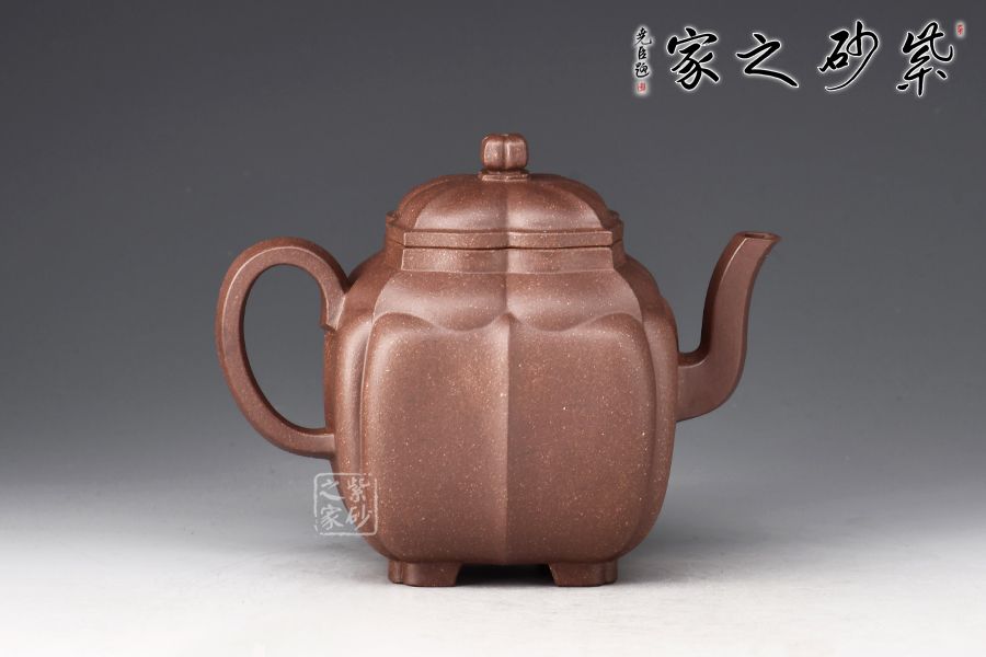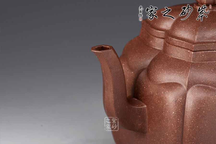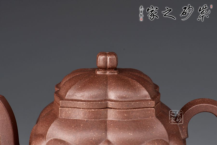 四方菱花是一款極具代表性的筋紋器造型壺,此款為何寬老師制作,菱花做工精美,造型古雅,四方造型出落得美麗大方,整個(gè)壺筋紋明理清晰,明暗有度,而且比例協(xié)調(diào),這些特點(diǎn)串結(jié)而成的,觀賞性更高,壺身由深淺不一的筋紋分配,可見(jiàn)老師技藝的高超。原礦紫泥制作,色澤古樸端莊,賞藏皆宜!