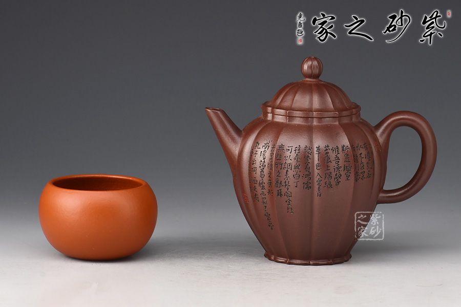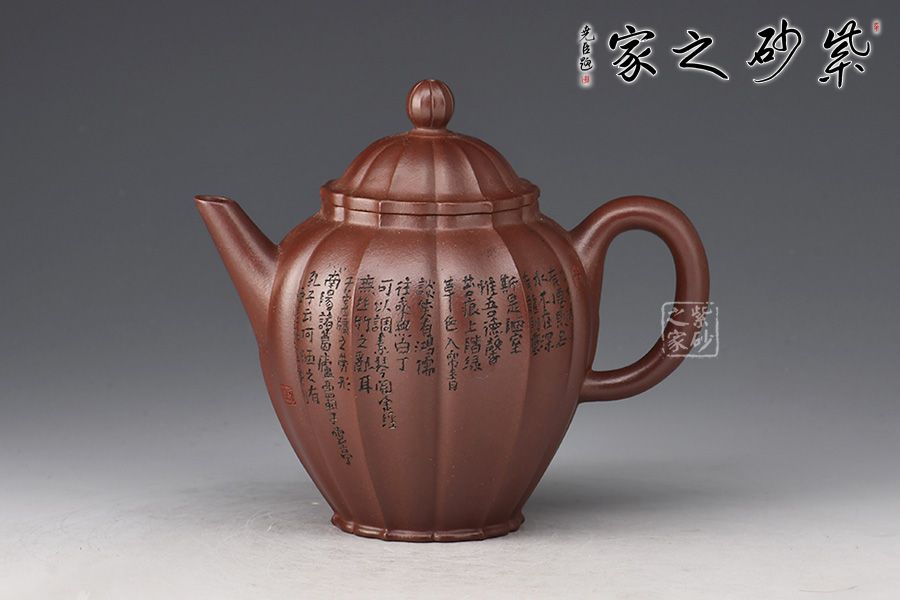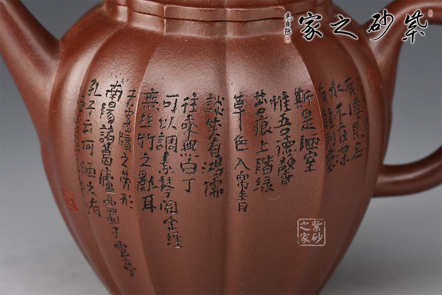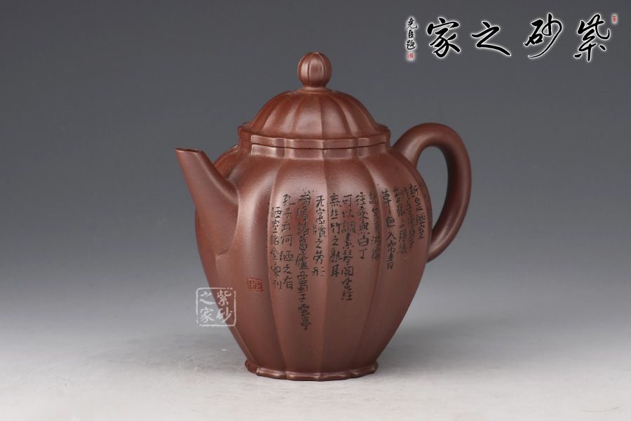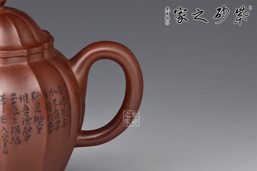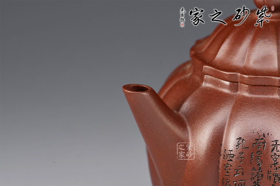 壺身像一朵含苞待放的菊花花蕾,喻意生機盎然。壺身刻繪,頗具文人氣。