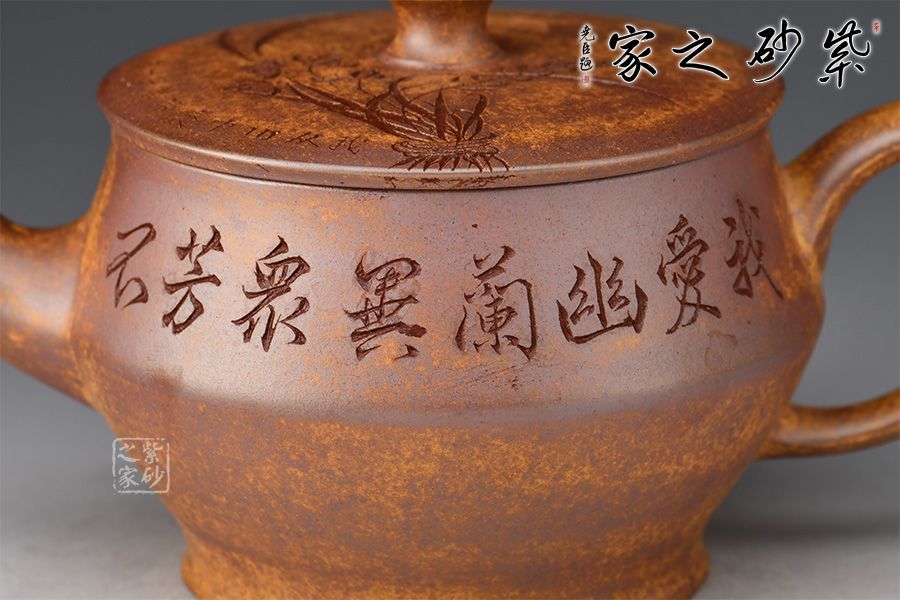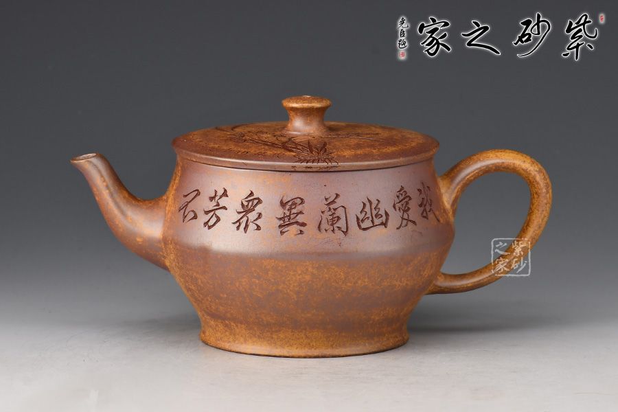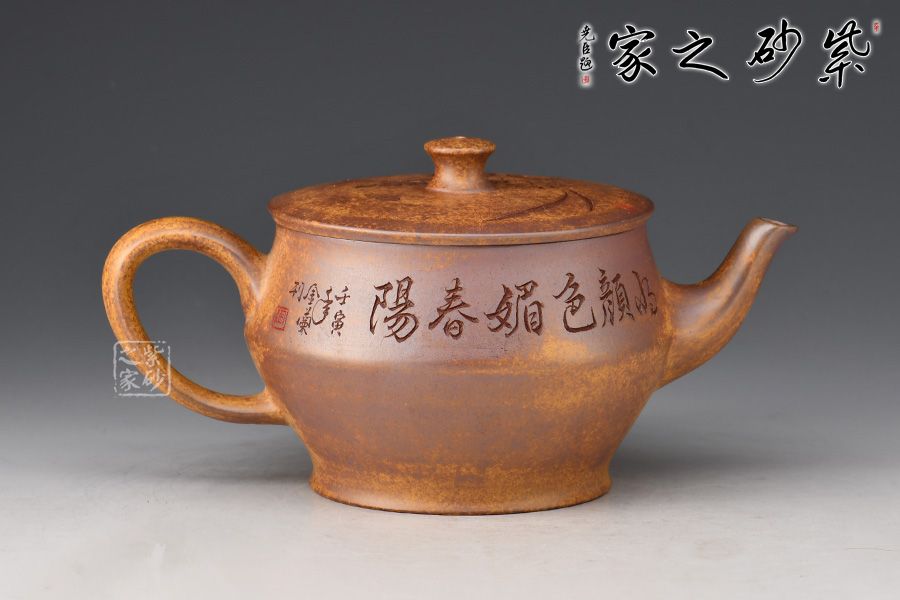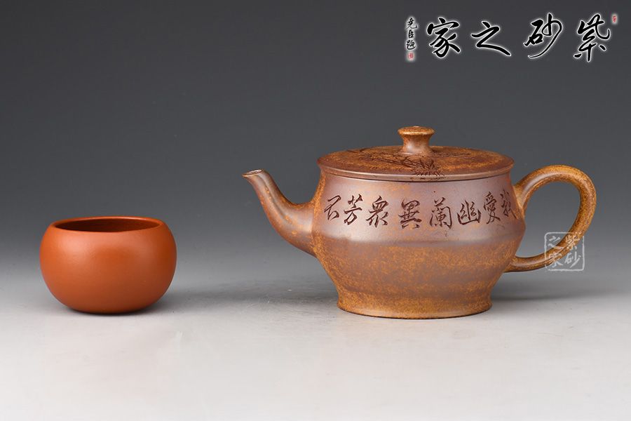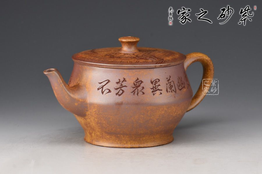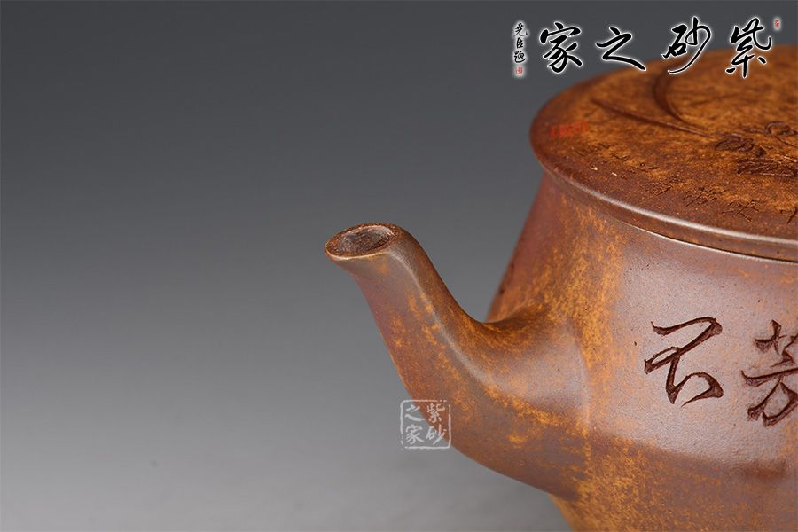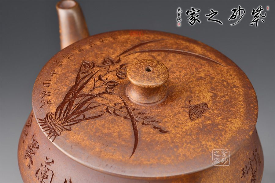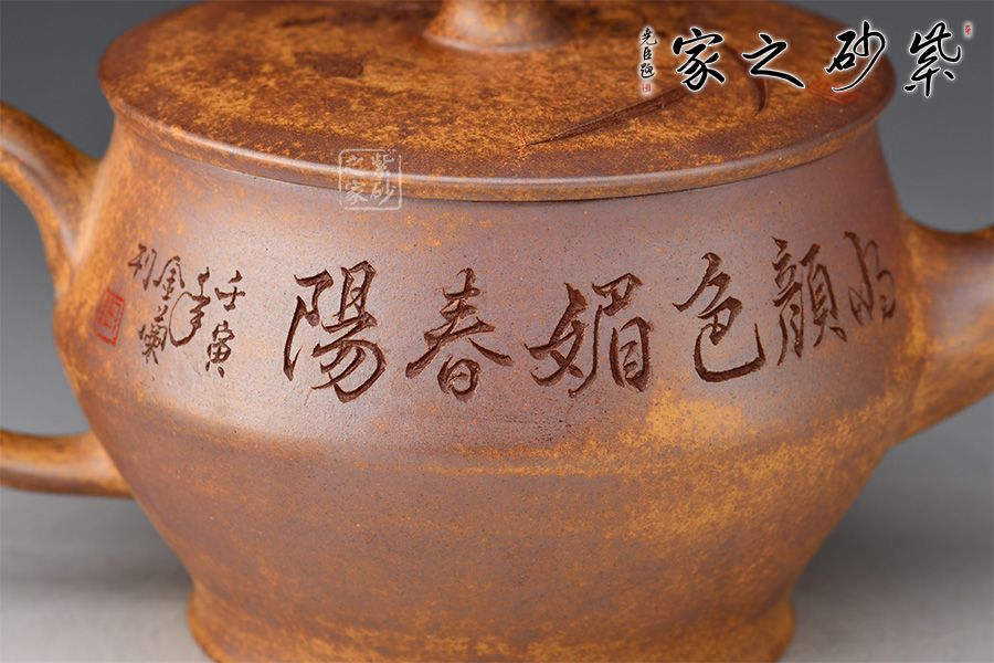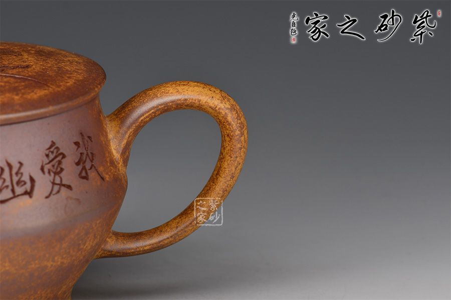 此壺虎皮金砂為胎,老味十足,全手工精制而成。壺身圈線裝飾,彰顯層次之感。自然流暢的線條,構(gòu)筑壺肩之優(yōu)雅弧度,壓蓋嚴(yán)絲合縫,圓柱鈕拿捏舒適。短彎流挺翹,出水爽利,耳把上豐下斂,氣勢(shì)雄渾。整器工藝精巧,氣韻生動(dòng),300cc容量適中,實(shí)用性佳,是一把高性價(jià)比的佳作,用藏皆宜。