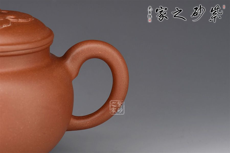 此壺為作者摹古而做,以原礦紫泥作胎,全手工精制而成。砂質(zhì)細(xì)膩,色澤內(nèi)斂渾厚,壺身圓潤(rùn)勻稱,氣韻飽滿,肩線曲而挺括,走勢(shì)流暢。蓋面如意紋裝飾,平實(shí)之中顯峭拔之態(tài)。