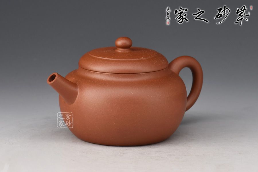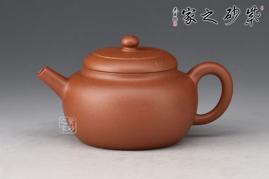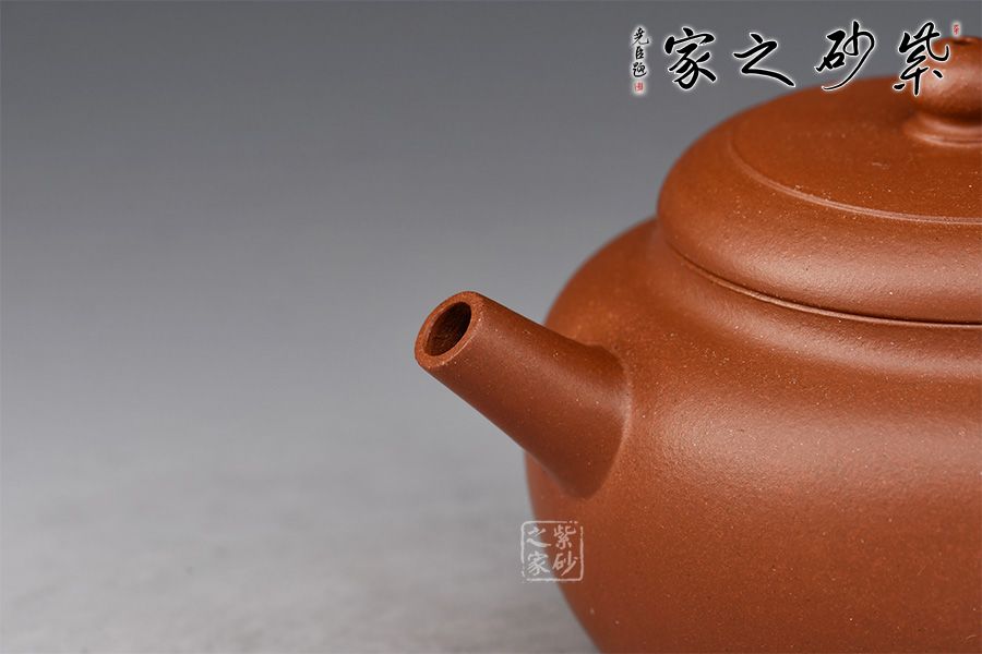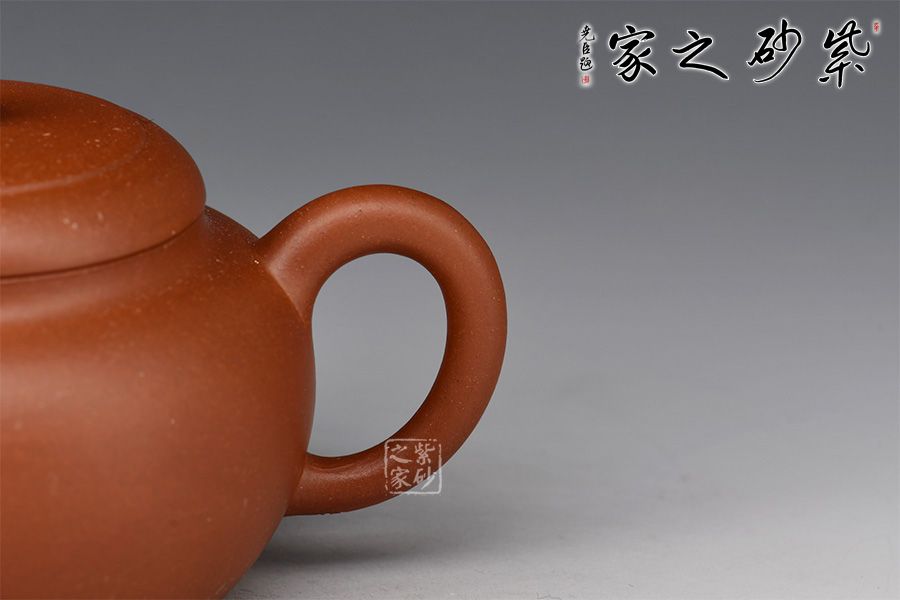 壺身圓潤,線條流暢自然,器型沉穩(wěn)自在,工藝精巧。嵌蓋設計嚴絲合縫,圓珠壺鈕小巧可愛。直嘴出水爽利,耳把拿捏舒適。精選原礦紫泥為胎,泥色古樸,好泡養(yǎng)。