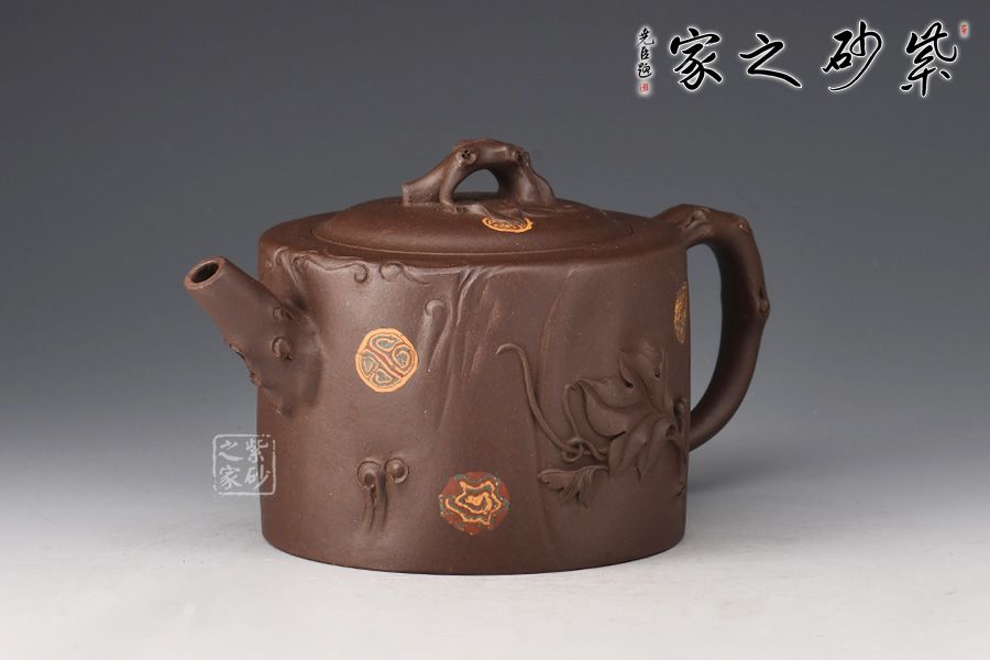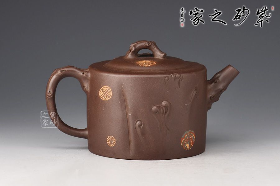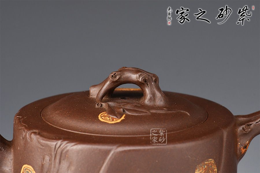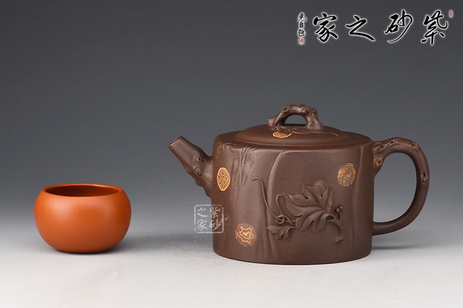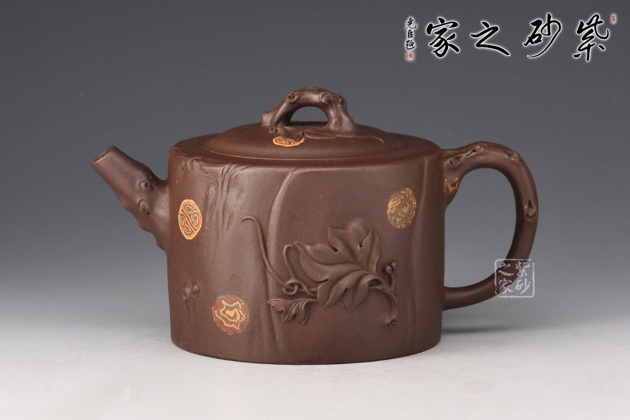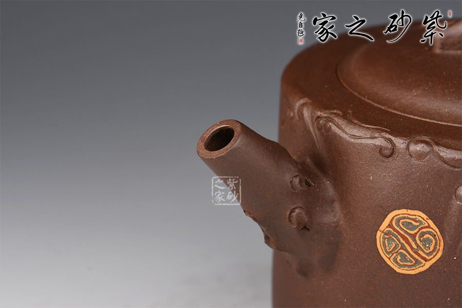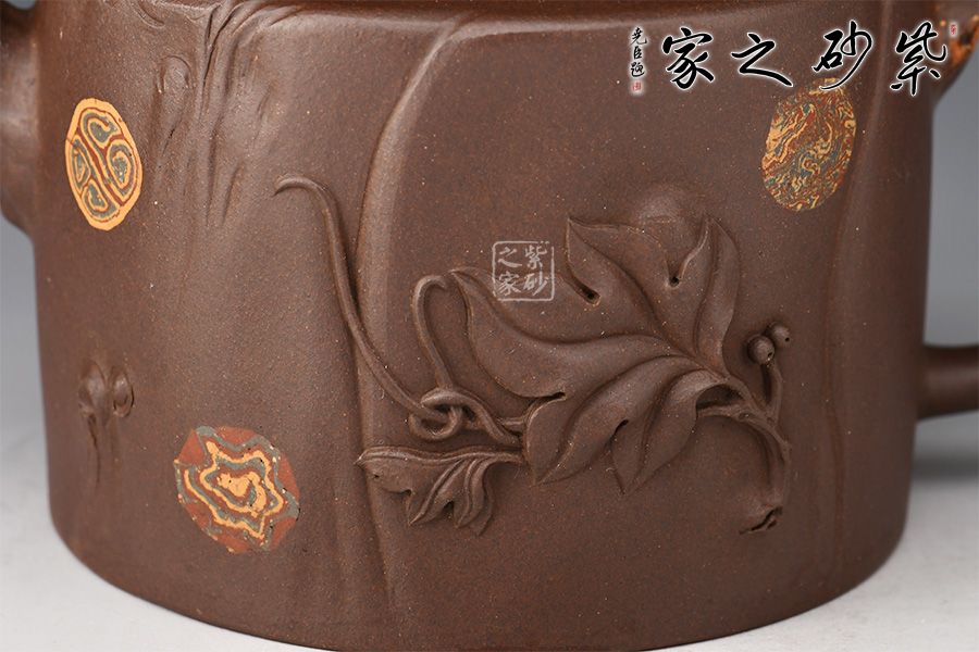 壺嘴、壺鈕和壺把則是樹枝,有彎有直,有收有放,粗細(xì)不一,將樹樁壺點(diǎn)綴得尤其逼真。
