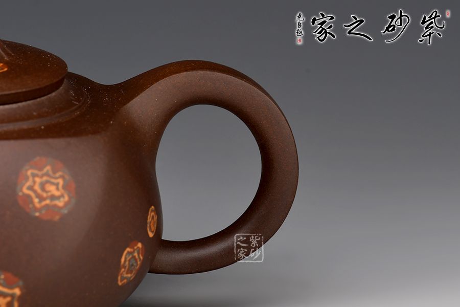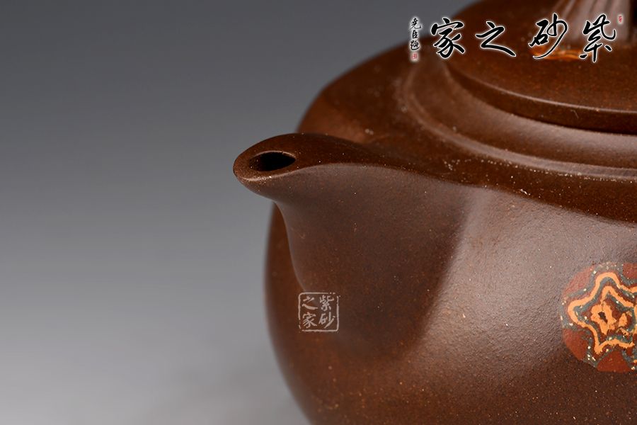 此壺由印包壺改制而來,相傳印包壺之制始于時(shí)大彬,清末民初陳光明有印包壺傳世。