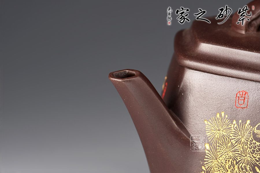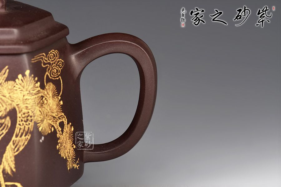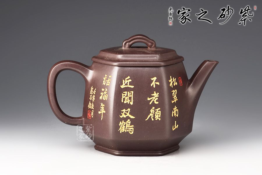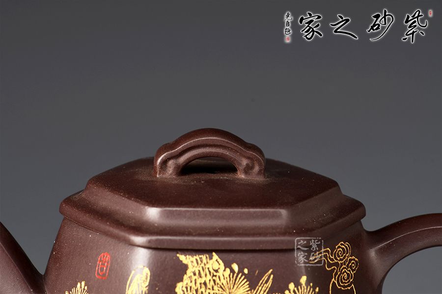 此壺名為六方如意,寓意六方來喜,吉祥如意。 六方形體明快挺秀,具有陽剛之氣,棱角清晰,將方器的幾何之美把握得恰如其分,成型難度極高。