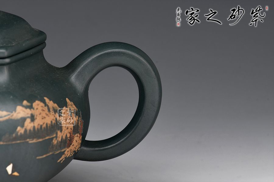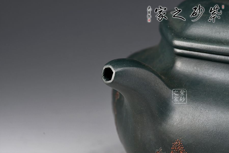六方掇只為經(jīng)典傳統(tǒng)壺型,此壺壺身雖圓實方,方中見圓,方圓之間盡顯力道,整器穩(wěn)重、渾厚有力,是一款不可多得的好壺;該款壺兼具了圓壺與六方的特色,骨肉勻亭,質感強烈,壺蓋微微隆起,子母線咬合緊密,短頸,溜肩,壺身塊面過渡和緩,起承轉合不見棱角,一彎嘴挺峭高揚,暗接精湛無痕,嘴口圓潤,出水爽利;耳形端把纖柔輕盈,如發(fā)髻溫婉下垂,端握舒適。力薦!