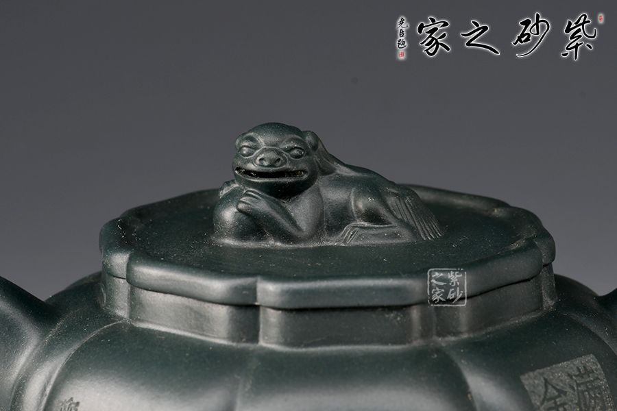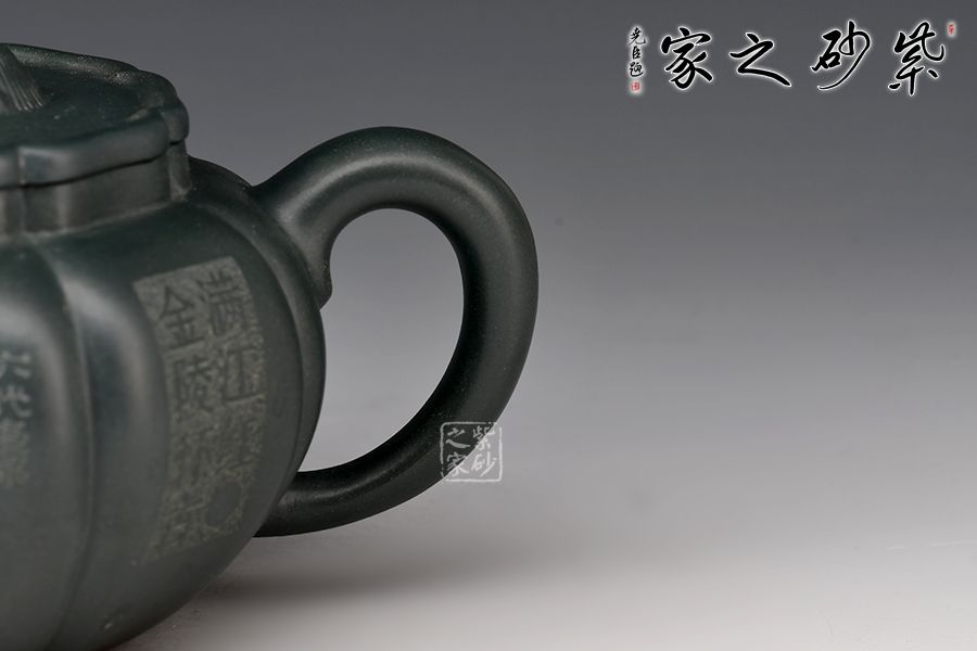 紫泥當(dāng)中的優(yōu)質(zhì)泥底槽青手制,泥料堅(jiān)致,呈深紫色,壺身分為六瓣筋囊,