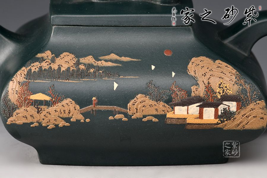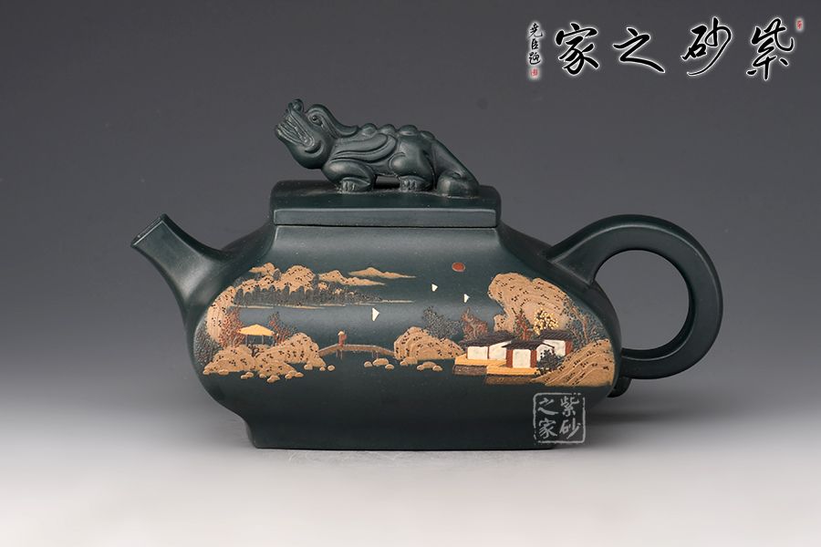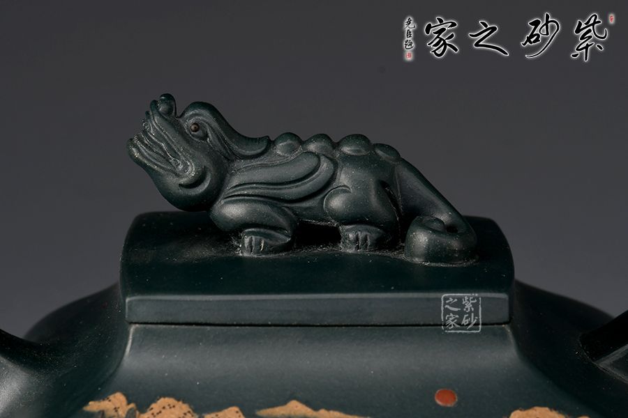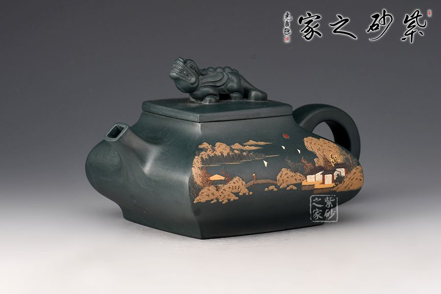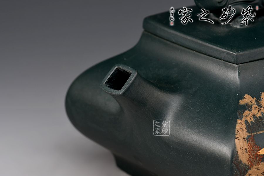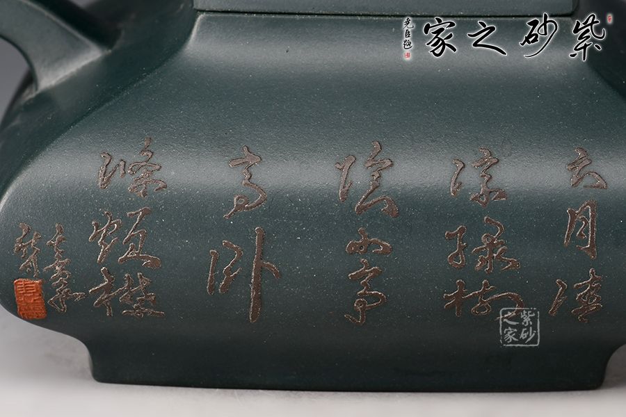 此壺名為“四方祥瑞”,壺身四方型豐斂自如,直中有曲、曲有中直,方中寓圓,