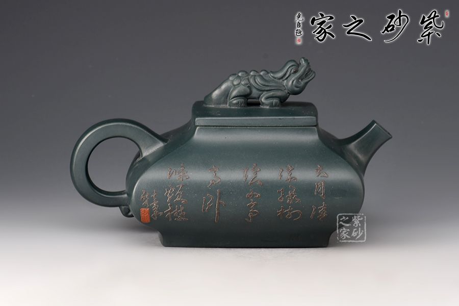 特點(diǎn):泥色特異,青藍(lán)色中略泛綠光,清秀獨(dú)特;稍一泡養(yǎng),色調(diào)更形穩(wěn)實(shí),溫潤透明,變化甚巨,玩賞深具成就感。