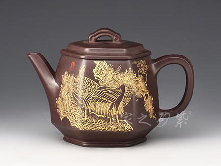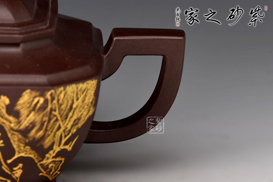 此壺在傳統(tǒng)之上融入新意,改圓碗燈為八方,方中有圓,圓中寓方,整體大氣,