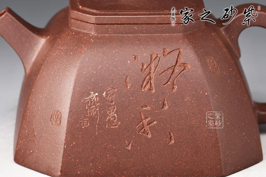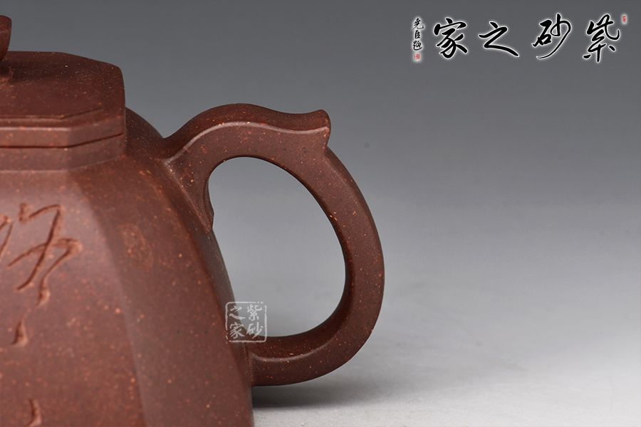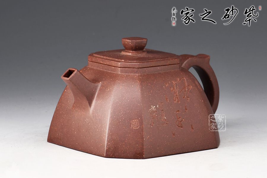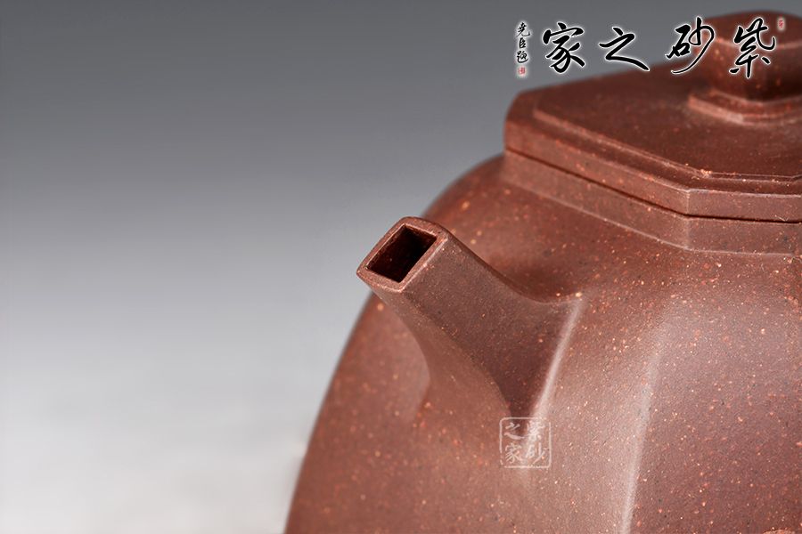 此壺做工精致,色澤古樸端莊,線條棱角分明,壺身近梯形,由幾個(gè)面構(gòu)成,方中寓圓,過渡自然,造型新穎別致,弧線與棱角的結(jié)合堪稱剛?cè)岵?jì)。直流嘴胥出,出水爽快,耳把張力十足,便于抓握,大口蓋,實(shí)用性極強(qiáng),此壺值得入手!