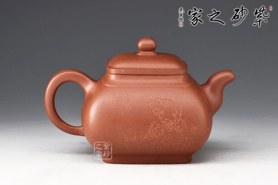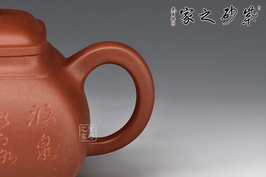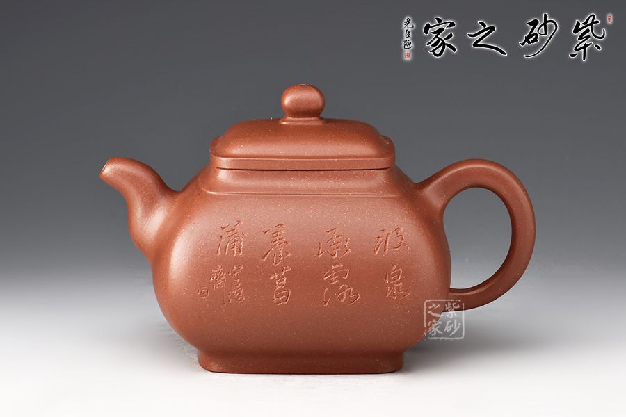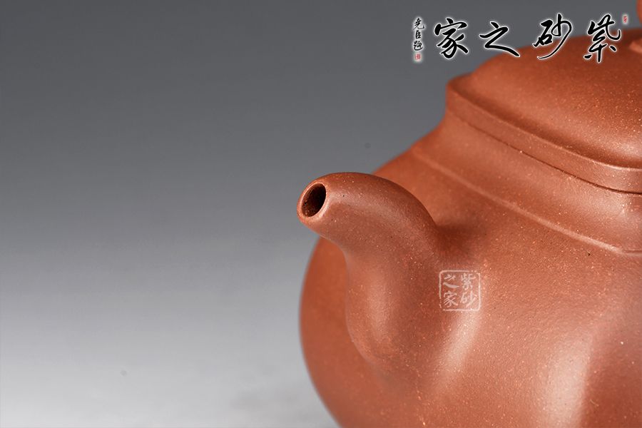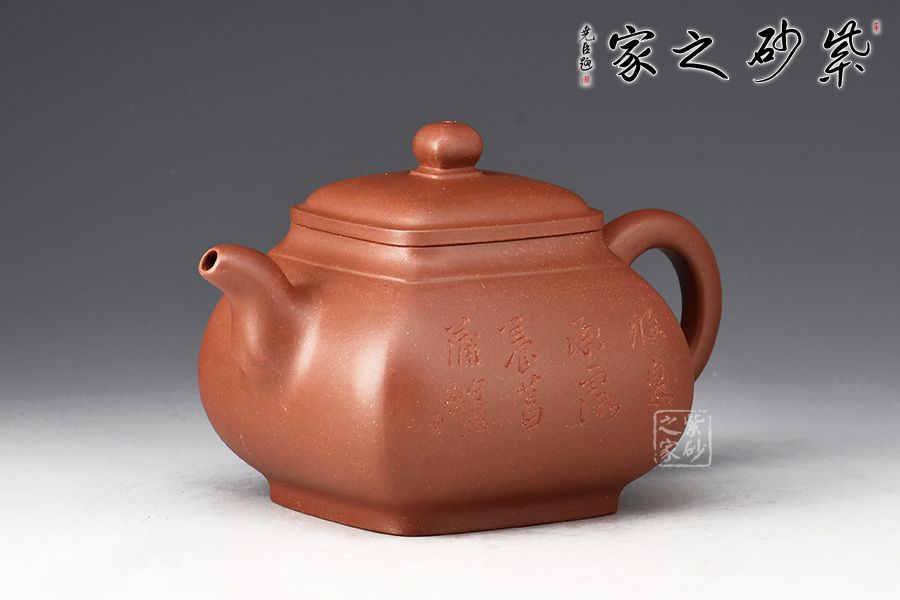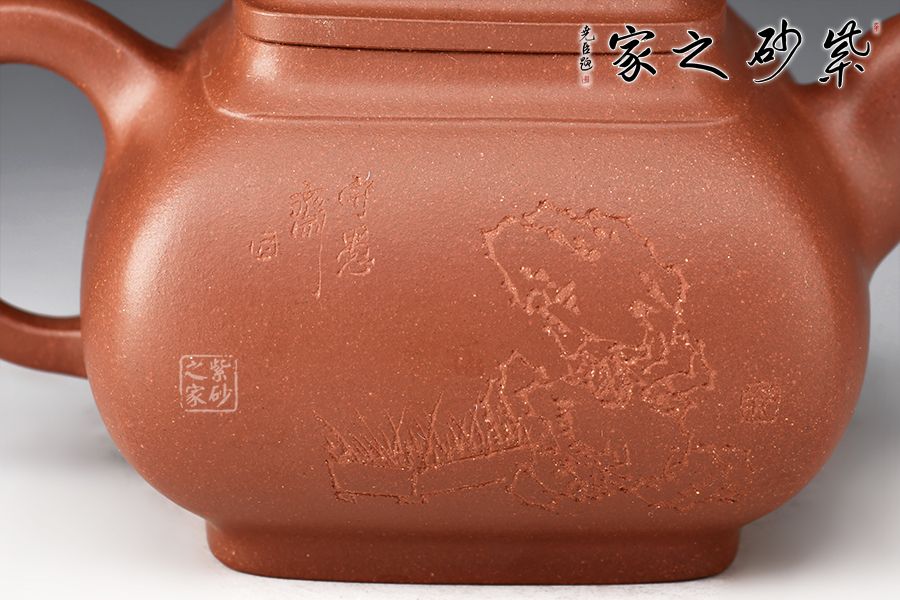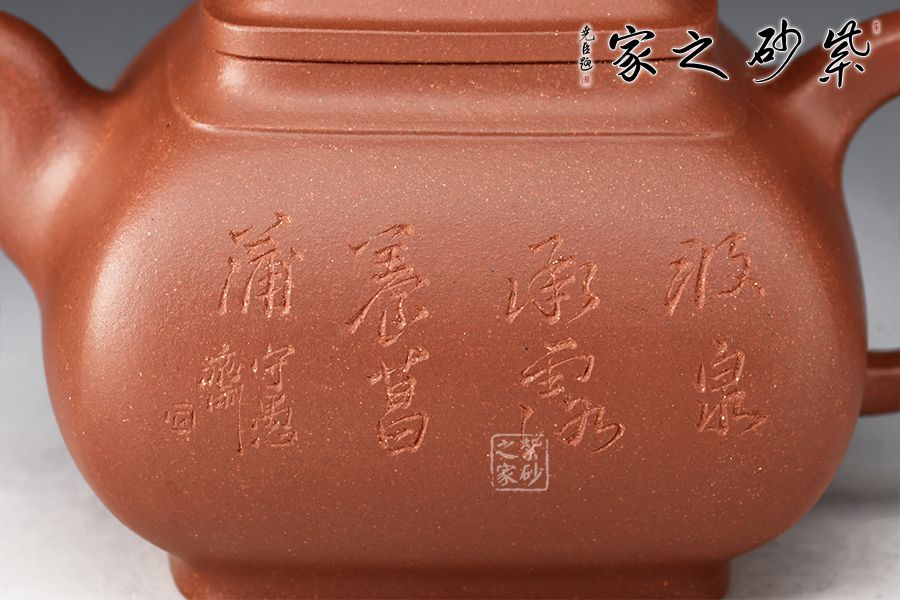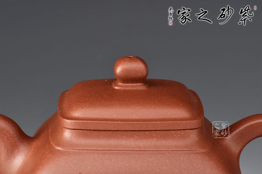 此壺壺體近四方形,方中有圓,圓中寓方,方圓結(jié)合。造型簡潔大方,線條流暢而富有變化,為壺中佳品。多一分則嫌多,少一分則少!