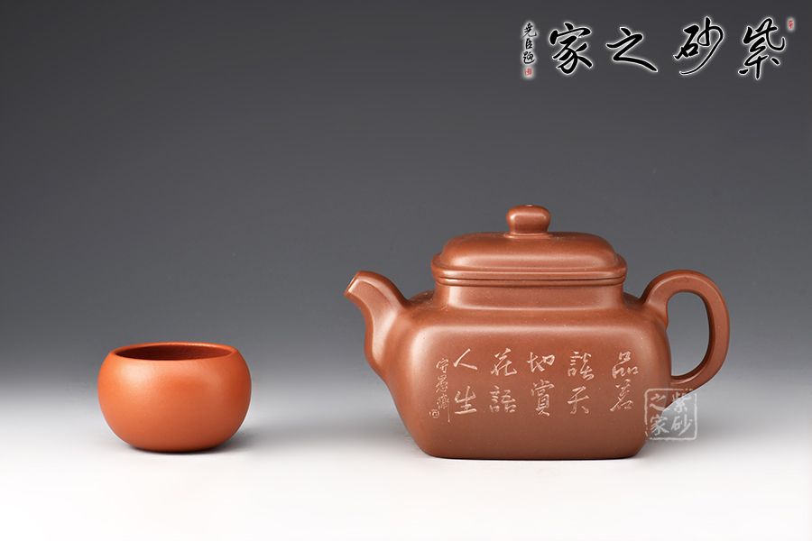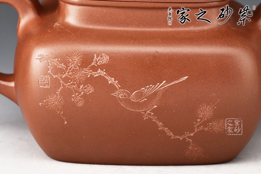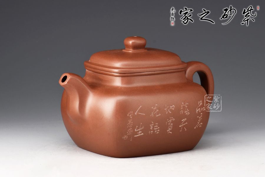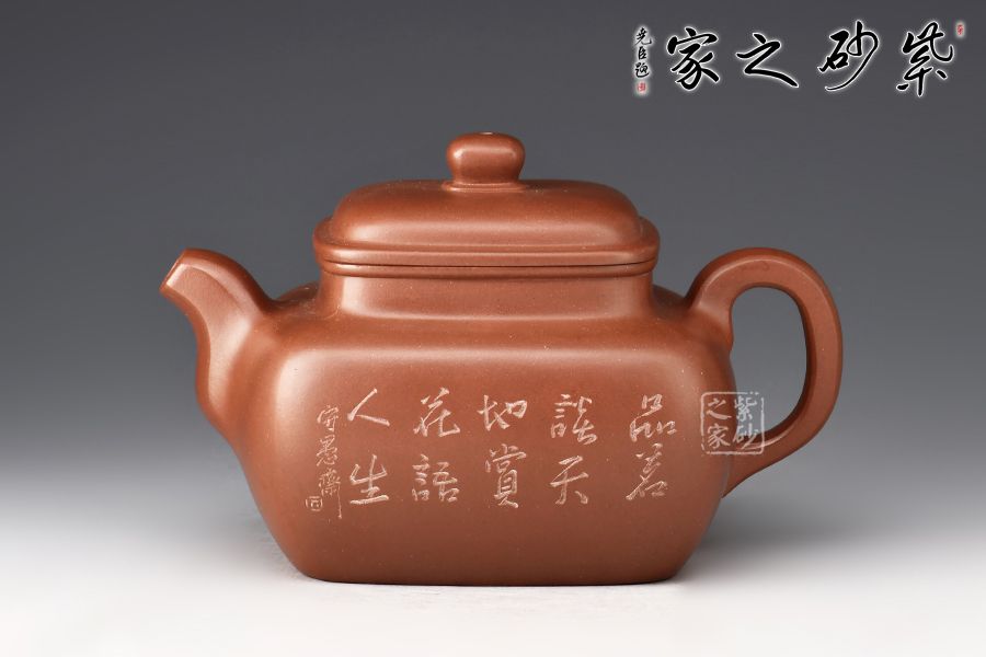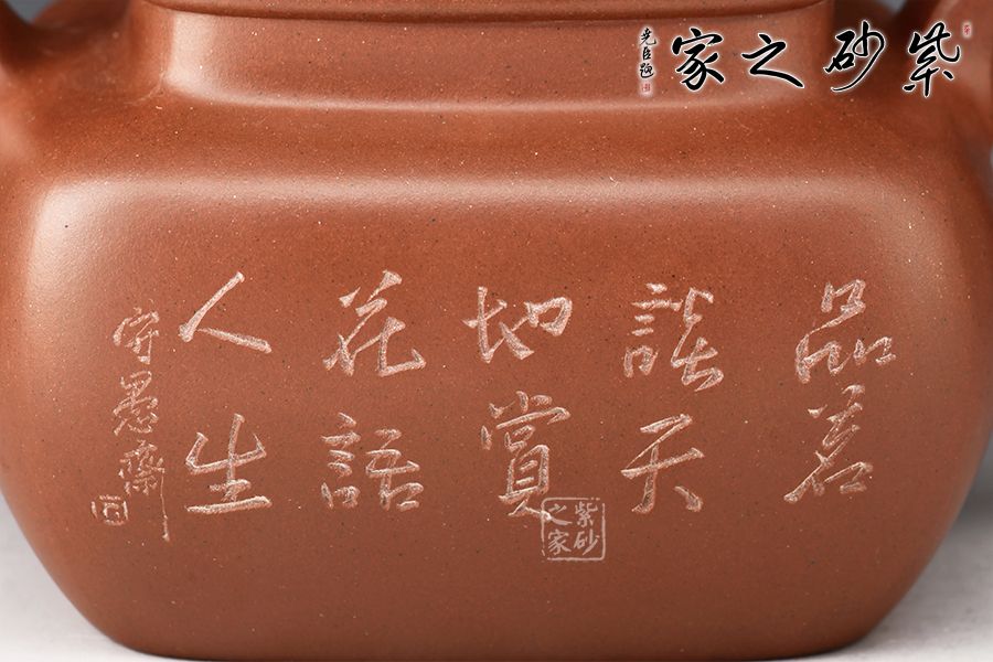 壺身刻繪:品茗談天地,賞花語人生,刀法利落,筆力飄逸,情趣韻味優(yōu)雅,值得賞藏。