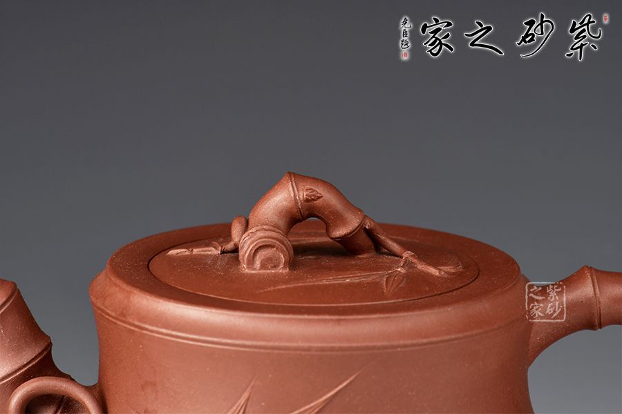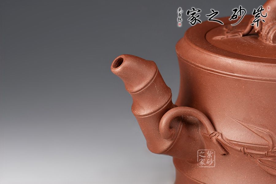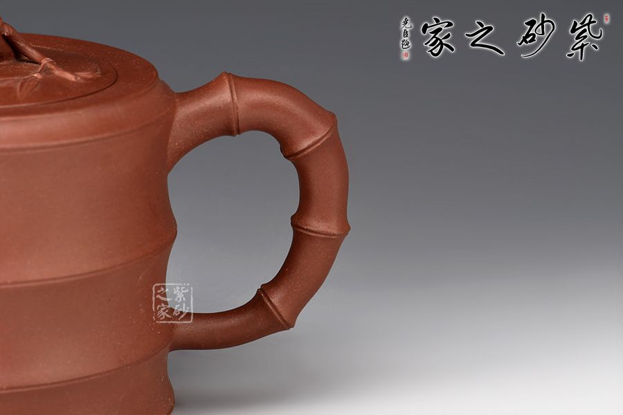 “竹段”這一造型算是經(jīng)典中的經(jīng)典,是一款清新雅致的花貨,這款竹段則更顯得纖秀、俊逸,壺身造型是三節(jié)竹段,均勻而蒼勁,契合了竹的自由和清高,竹節(jié)部分的邊緣略寬,更逼近竹的真實形態(tài);壺嘴、壺鈕、壺把的竹節(jié)造型也相對更修長細膩,顯出一番仙風道骨之韻味,壺身及壺蓋上的竹葉貼花,將竹葉薄如蟬翼的輕盈質感表現(xiàn)得極為貼切,仿若隨風而動,似靜非靜,似動非動,其中的韻味,品之不絕。