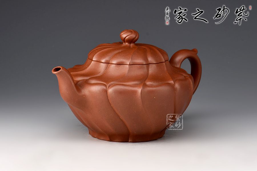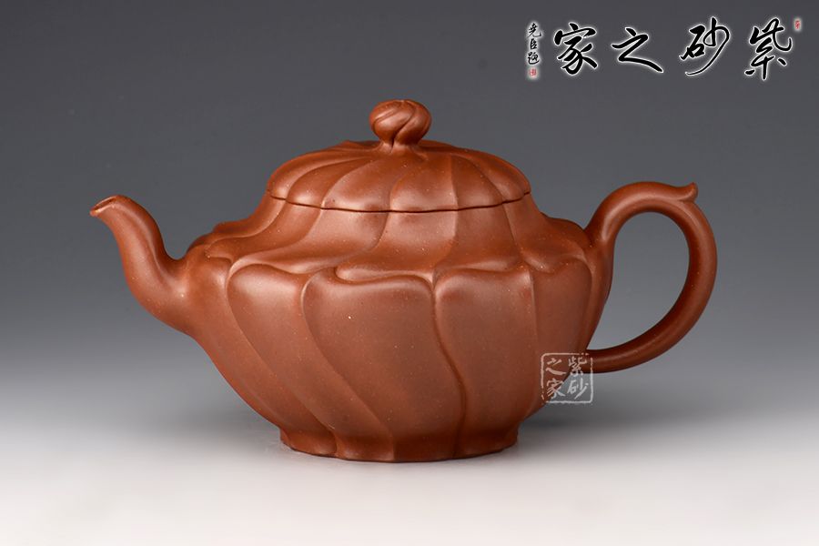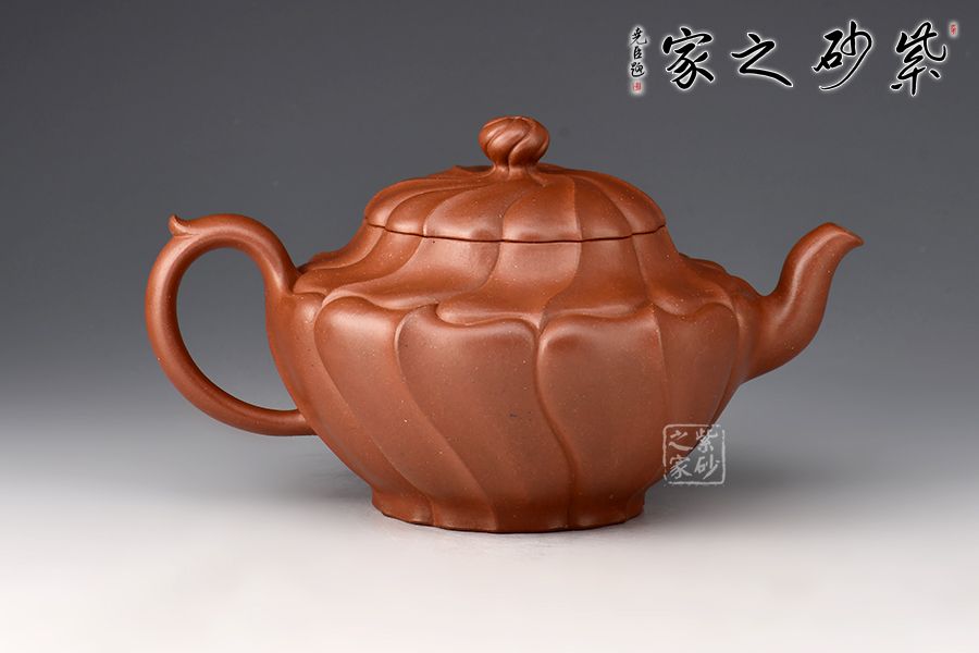 采用原礦底槽青制作而成,壺容量為410cc。此壺壺身較長(zhǎng),表面形成凹凸相間的筋紋,壺蓋與之應(yīng)和,呈蓮花筋紋狀,口蓋較大,實(shí)用性佳。三彎流,柔潤(rùn)優(yōu)美,環(huán)把隨勢(shì),與壺嘴相呼應(yīng),氣韻舒暢。
