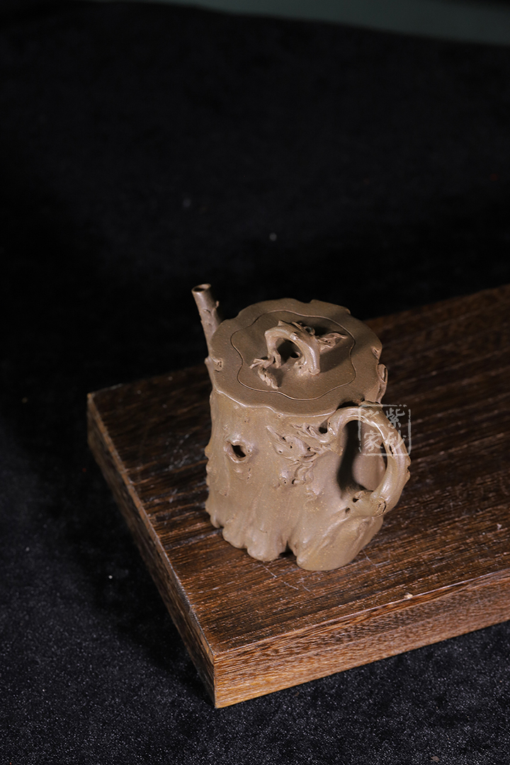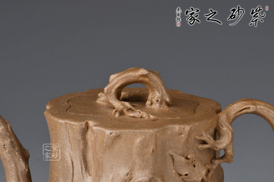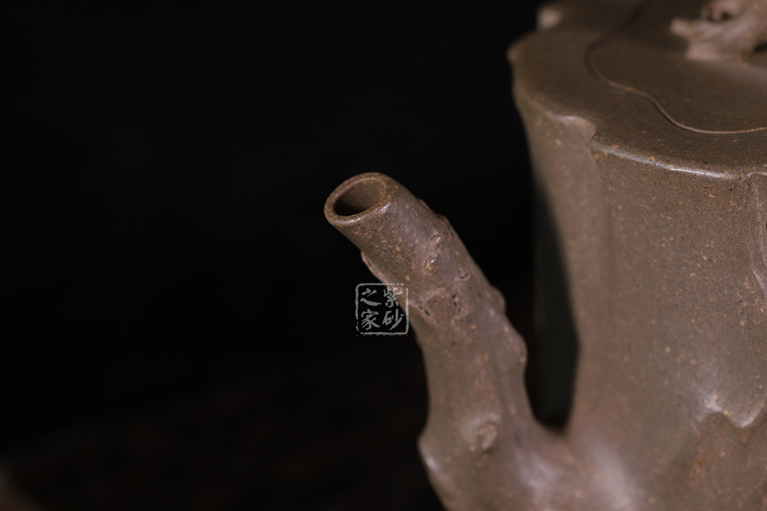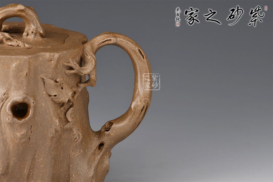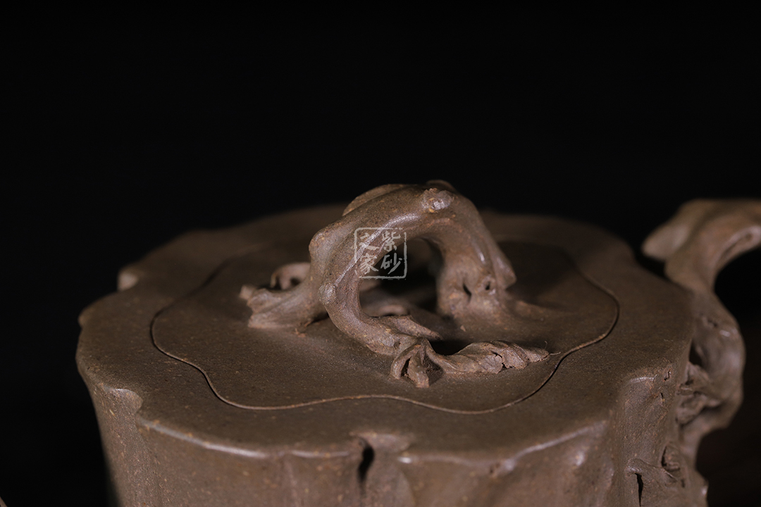 菩提樁精選青段制作而成,泥色古樸,仿生器首選。整壺為仿生器,壺身形似枯樹,癭節(jié)滿身,不但突顯出其精工細(xì)作,亦展現(xiàn)出其深厚的制作功底。嘴、把似伸展出的枝干。嵌蓋設(shè)計(jì),與壺身融為一體。壺紐則用異形樹根為造型,栩栩如生。200cc的黃金容量,既適合一個(gè)人品茶又適合和朋友相聚。