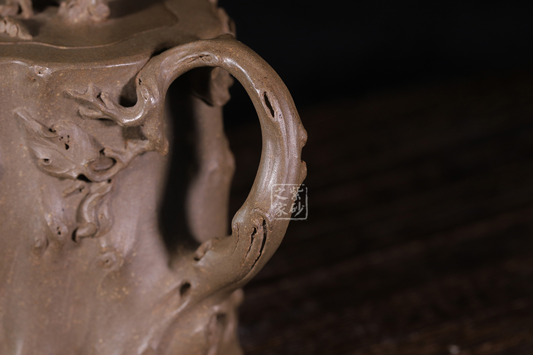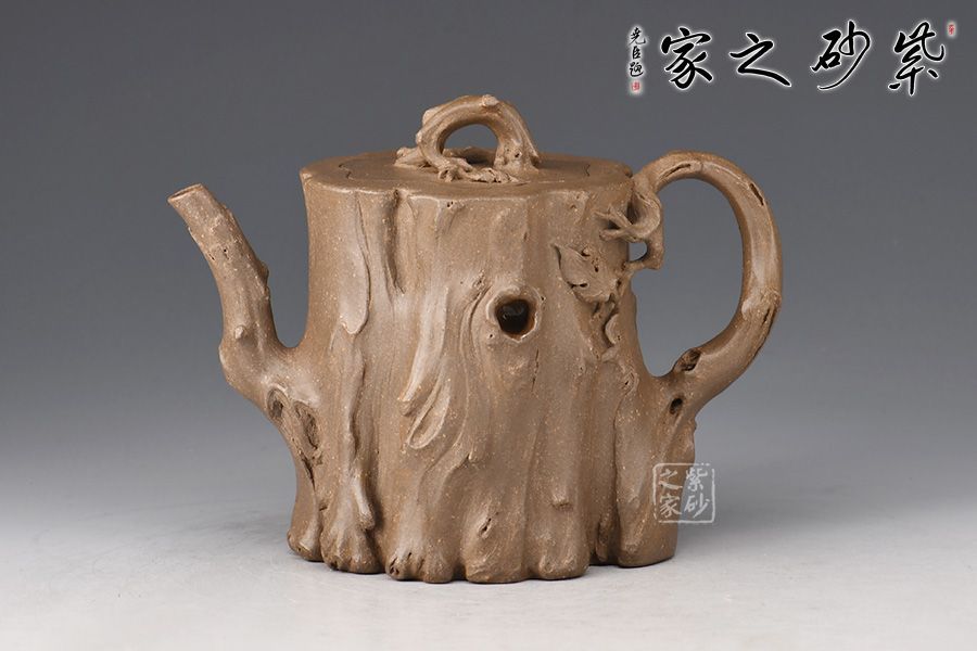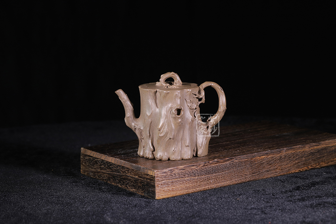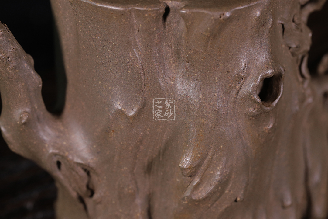 菩提樁精選青段制作而成,泥色古樸,仿生器首選。整壺為仿生器,壺身形似枯樹,癭節(jié)滿身,不但突顯出其精工細(xì)作,亦展現(xiàn)出其深厚的制作功底。嘴、把似伸展出的枝干。嵌蓋設(shè)計(jì),與壺身融為一體。壺紐則用異形樹根為造型,栩栩如生。200cc的黃金容量,既適合一個(gè)人品茶又適合和朋友相聚。