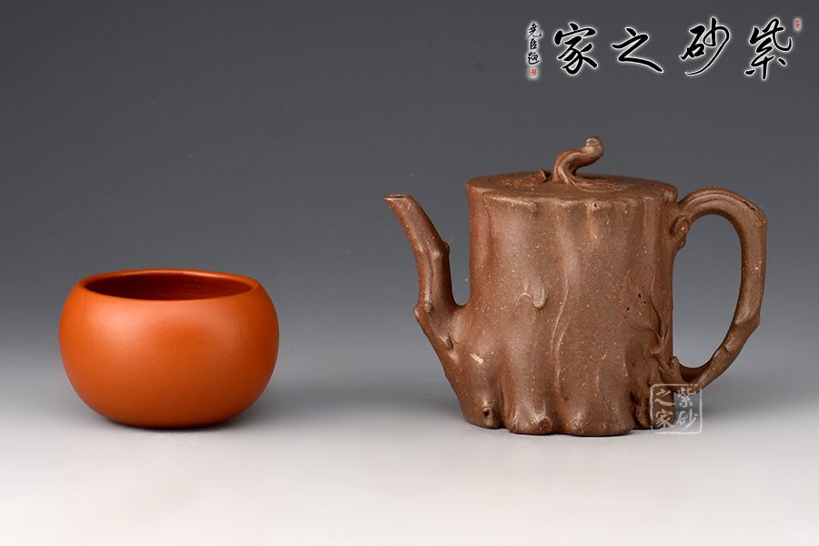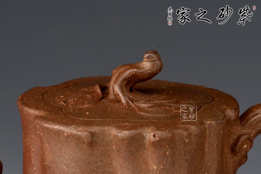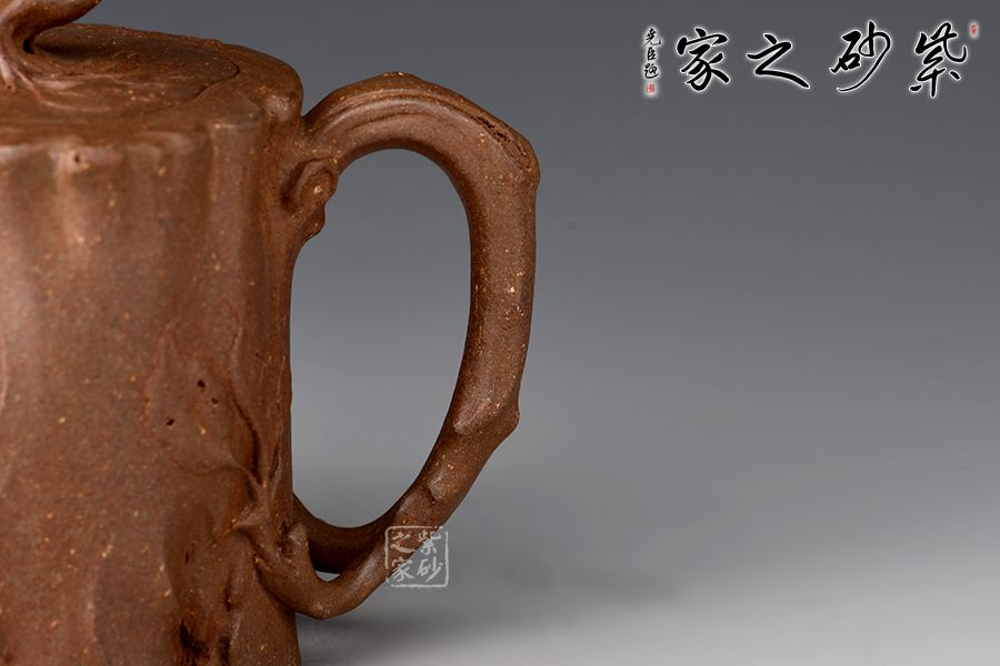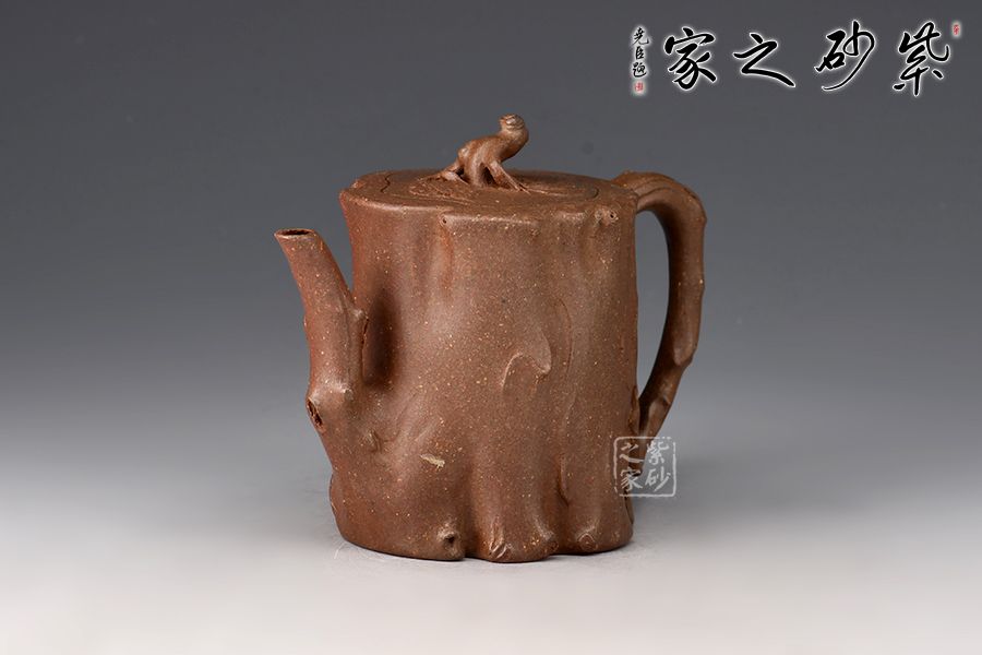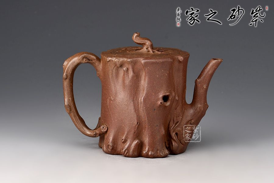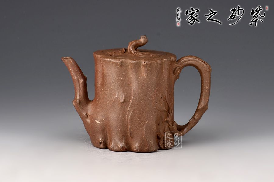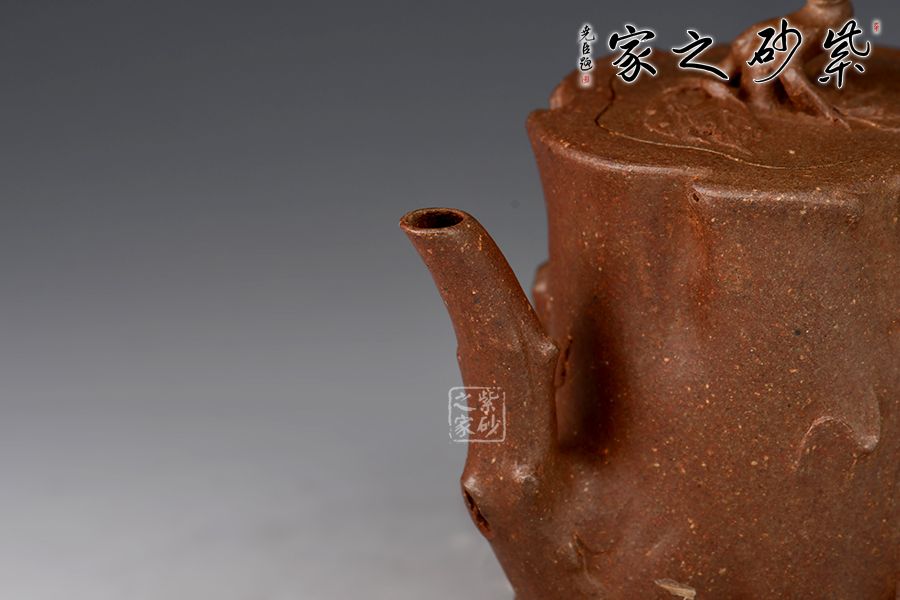 菩提樁精選青段制作而成,泥色古樸,仿生器首選。整壺為仿生器,壺身形似枯樹(shù),癭節(jié)滿身,不但突顯出其精工細(xì)作,亦展現(xiàn)出其深厚的制作功底。嘴、把似伸展出的枝干。嵌蓋設(shè)計(jì),與壺身融為一體。壺紐則用異形樹(shù)根為造型,栩栩如生。100cc容量,小巧實(shí)用。