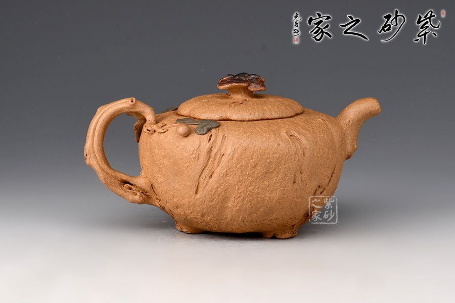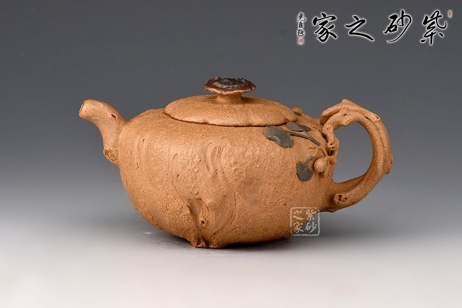 泥性:感甜嫩綿密,質(zhì)堅(jiān)而溫潤,呈近田黃色調(diào),為江蘇宜興趙莊山系朱泥礦~黃石黃之共生礦,經(jīng)挑揀練製而成,因含鐵量只達(dá)6%左右,致陶之后呈“金田黃色”。