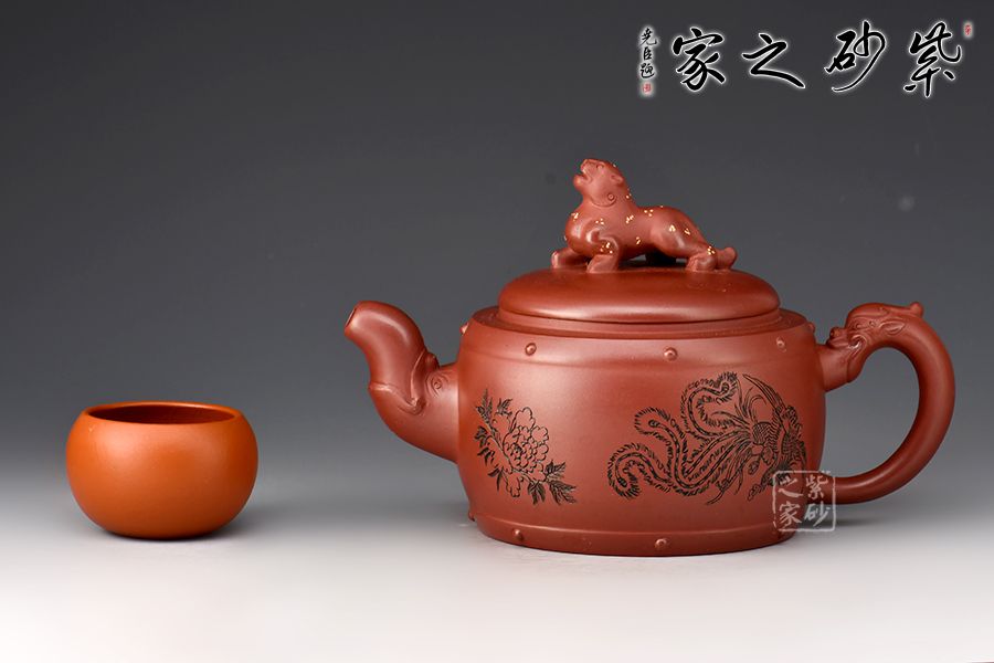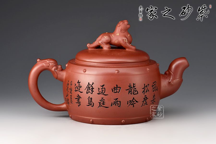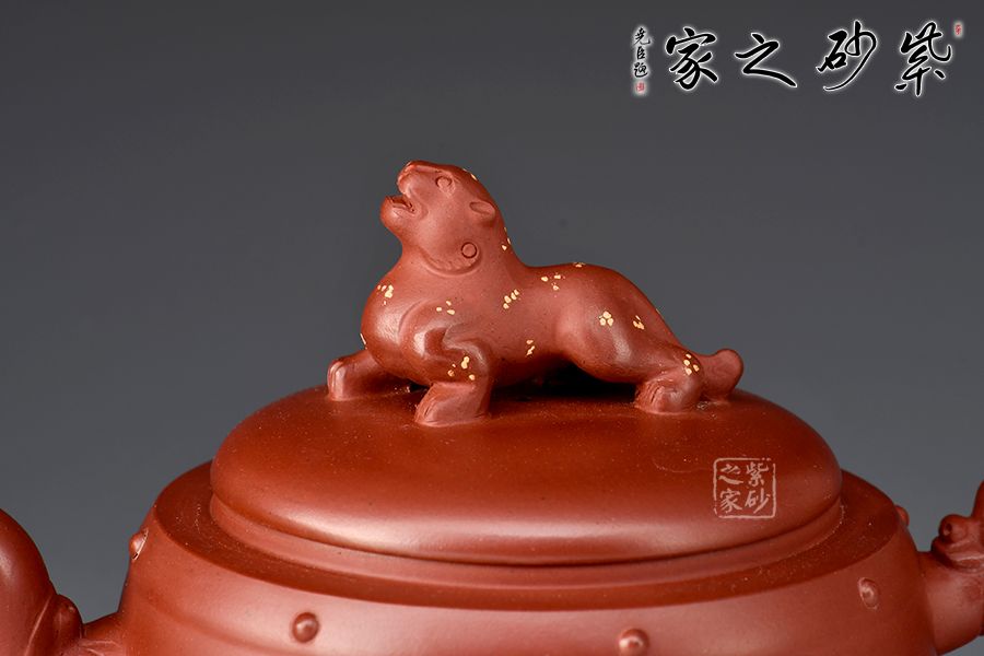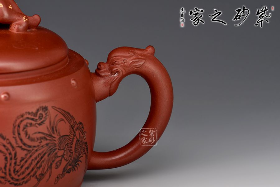 此作品是對(duì)中國(guó)幾千年龍文化的傳承,龍有四足,能騰云駕霧,昂揚(yáng)的龍頭作為壺嘴,壺把也為一條龍,鮮活生動(dòng),如添雙翼在側(cè),能振翅騰飛,蓋面同樣以一只瑞獸作鈕,十分霸氣傳神。
