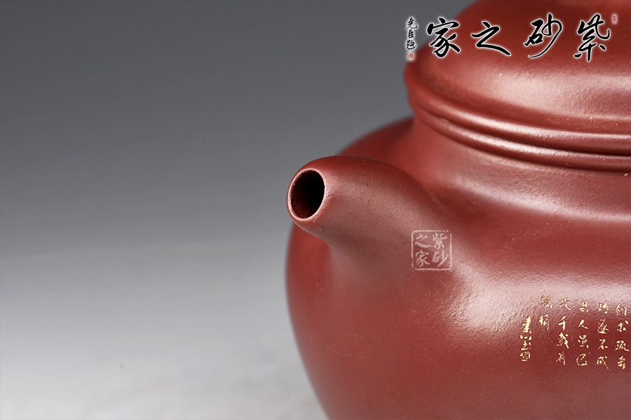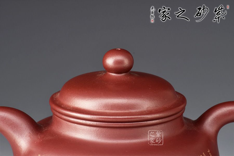 此作處處見圓,其形包容,加底設(shè)計將壺身襯托得更加亭亭玉立,更覺古雅美觀。整器凝練簡潔,內(nèi)斂而圓通,含蓄而豐盈,既有古典優(yōu)雅的氣質(zhì),又包含“圓滿”之意,值得賞玩。