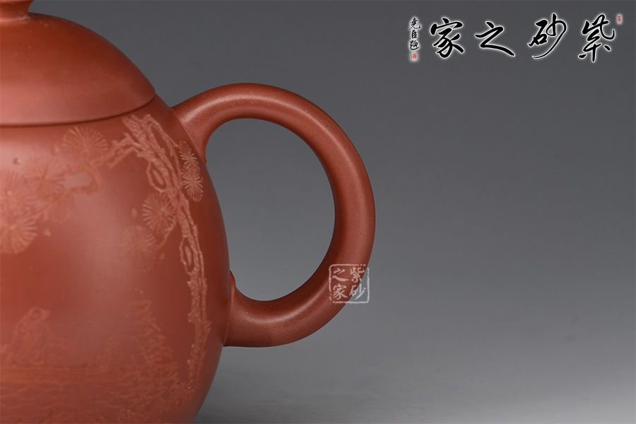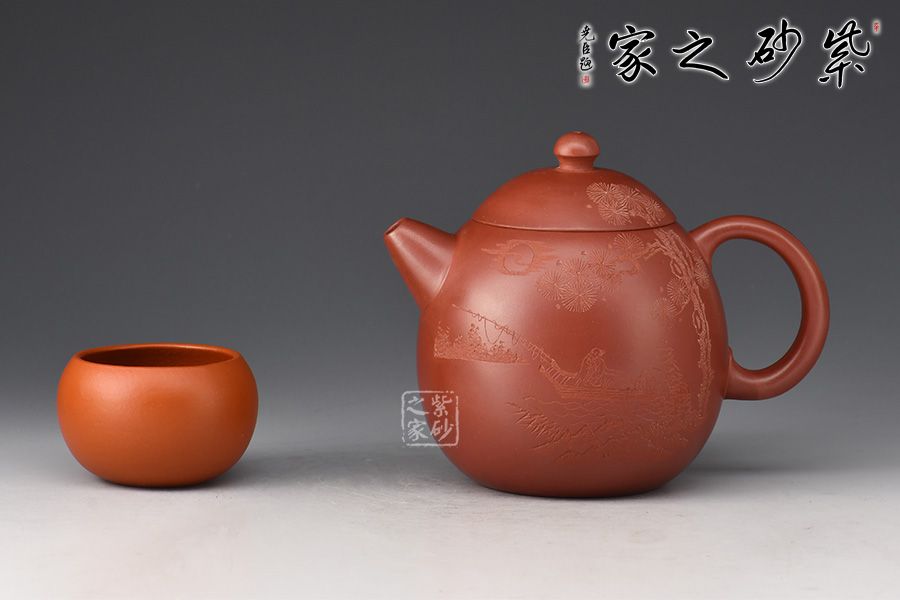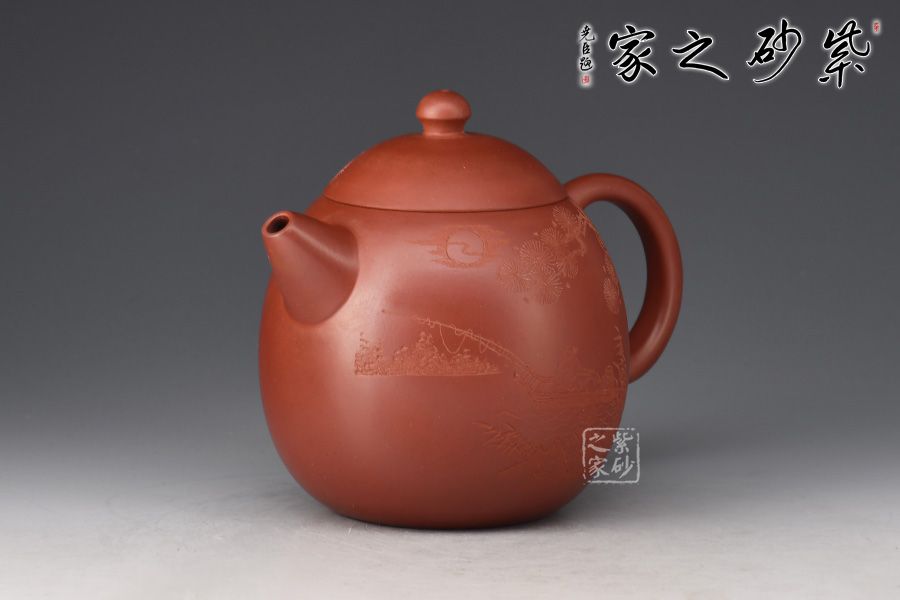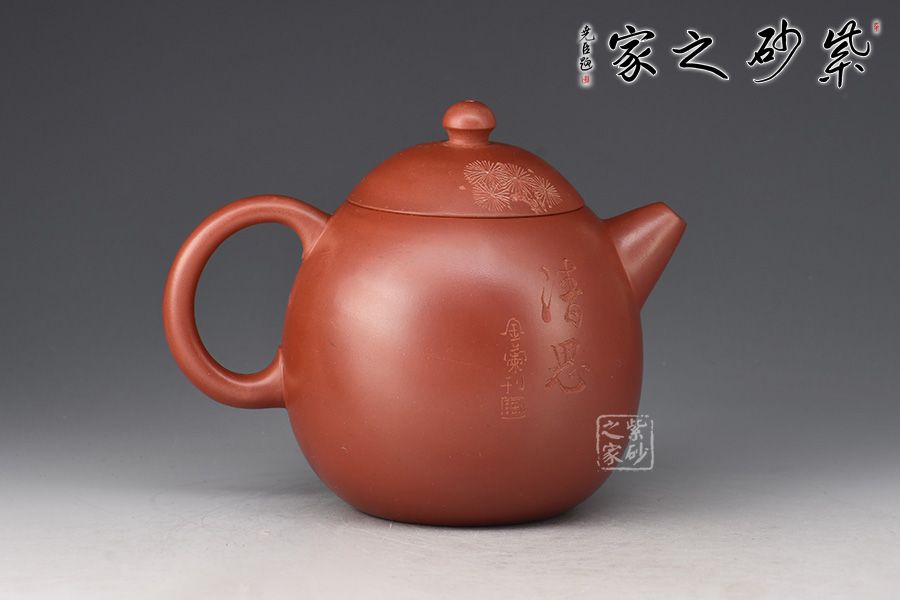 龍蛋是紫砂壺的經(jīng)典器型之一,壺身呈橢圓形,宛若龍蛋,截蓋與壺身渾然一體,線條優(yōu)美,氣韻飽滿(mǎn)。短翹直嘴斜出,出水爽利,大耳持握舒適,比例和諧。陶金蘭老師刻詩(shī)畫(huà)于壺身,再現(xiàn)文人風(fēng)骨,賞用皆宜!