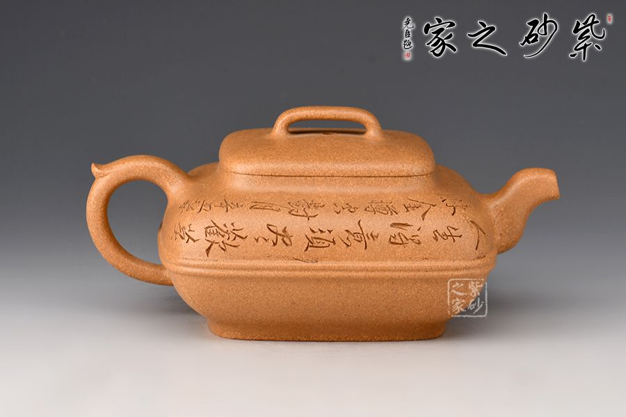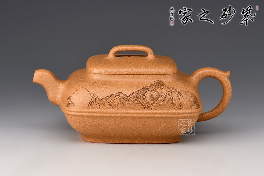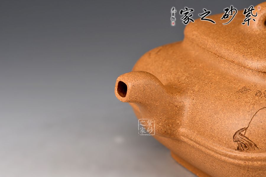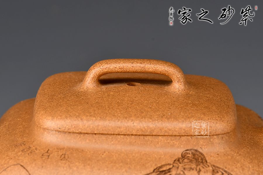 此作品線面挺括平正,輪廓線條分明,給予人們干凈利落,明快挺秀之感。整體以直線、橫線為主,器型的中軸線、平衡線正確、勻挺、富于變化,表現(xiàn)出輪廓分明,平穩(wěn)莊重的方壺特點(diǎn),壺身中間再加腰線將全壺提攜神韻,更雋永耐看,“畫龍點(diǎn)睛”,以達(dá)完美!
