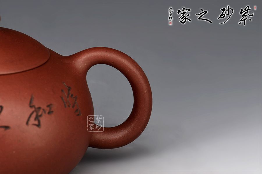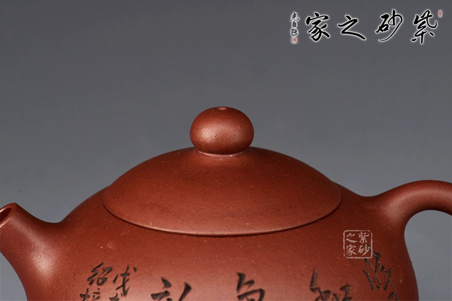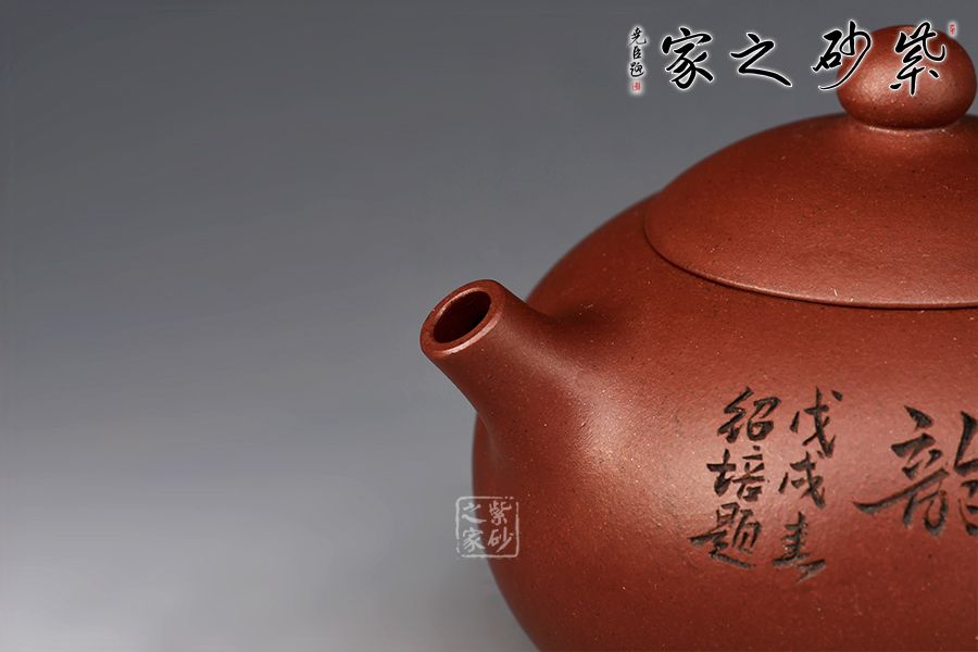 此件西施壺全手工拍打成型,器型比例協(xié)調(diào),線條簡潔明朗,壺身飽滿豐潤,圓蓋上點一粒珠鈕,玉潤生輝,口、蓋銜接自然流暢,恰到好處。錐流微胥,若櫻桃小口,婉約嬌俏;倒把行云流水,玲瓏嬌秀,整器柔美怡人,珠圓玉潤,彰顯凝練簡潔的力蘊與溫和可人的壺韻。