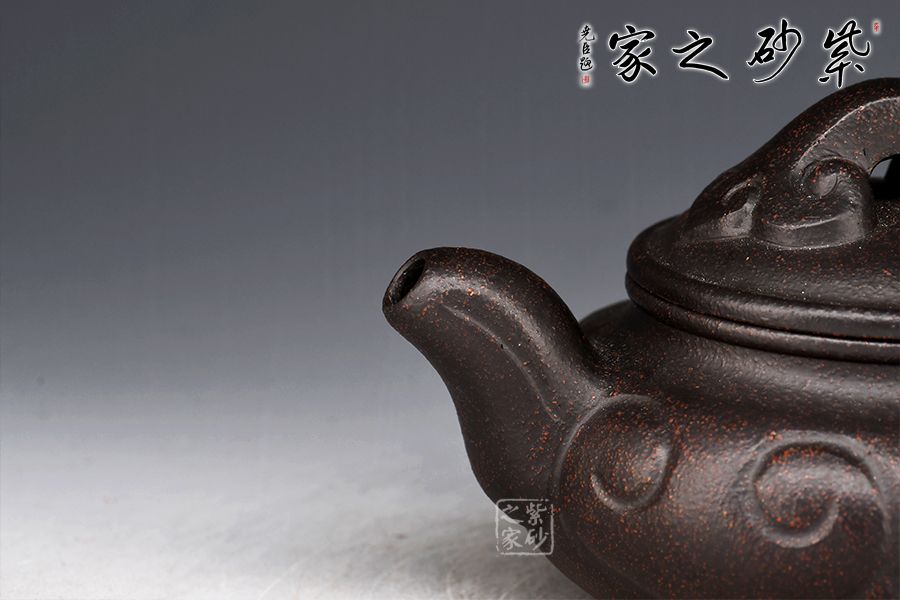 此壺最大的特點是比傳統(tǒng)仿古如意壺更加厚重雄渾,而且能夠在泥色的襯托下呈富貴、典雅之美。