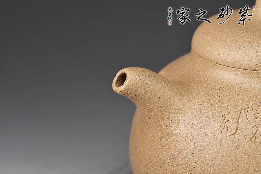 這款乳鼎壺身飽滿圓潤,嘴把線條優(yōu)美,壺蓋尺寸與壺口完美吻合,可以說是一款功用性極好的上品,是把玩收藏的不二選擇;整款壺以飽滿、渾厚見長,壺體呈上斂下豐之勢,身筒略高,壺腹底部尤為飽滿,三只乳丁足細(xì)膩有力,對(duì)比之下更覺壺體飽滿圓融,一彎嘴齊整、細(xì)膩,顯出爽利、果決之意,圈把略微見沉穩(wěn)之勢,與柔曲的壺嘴相應(yīng)和,妙趣橫生。
