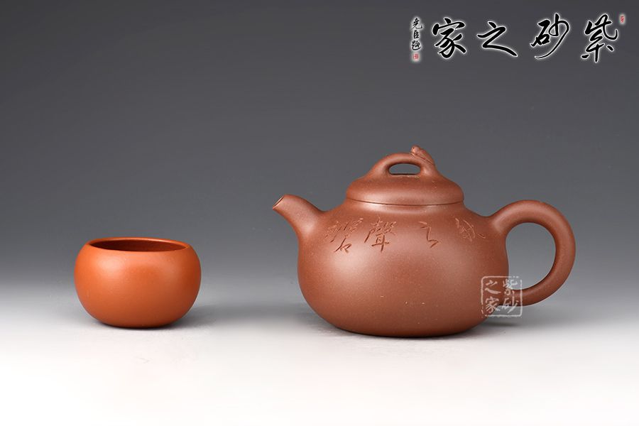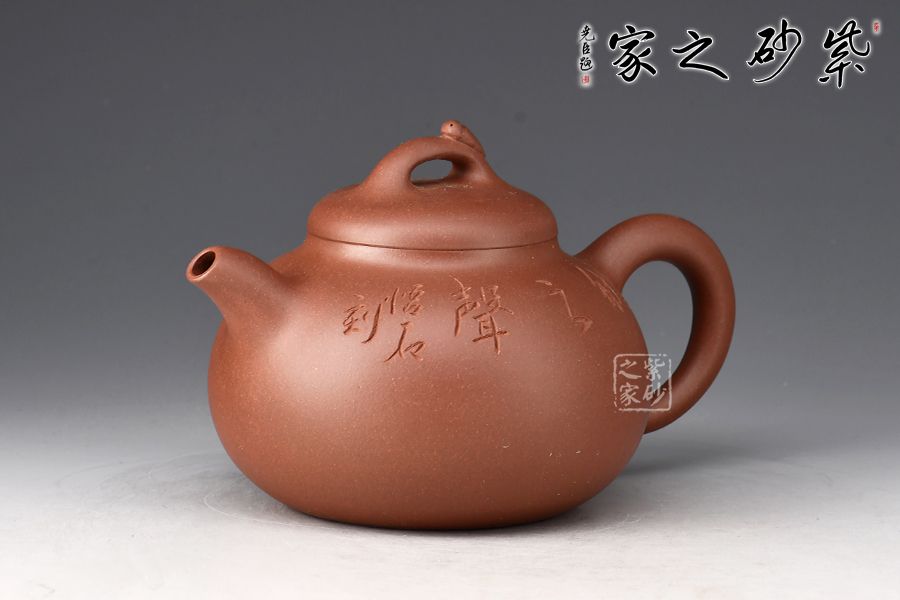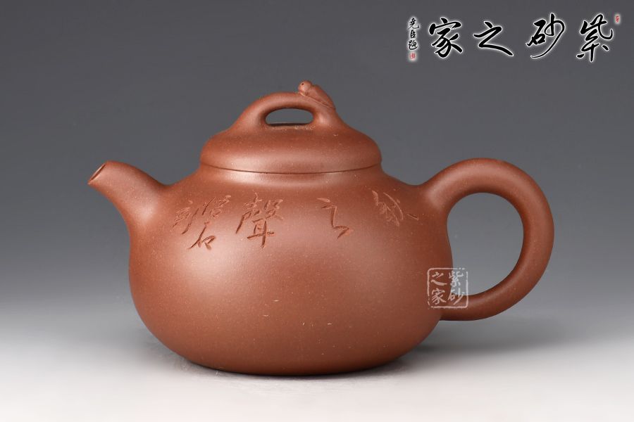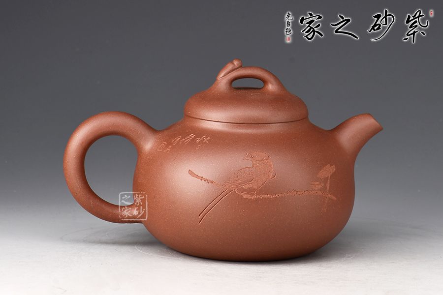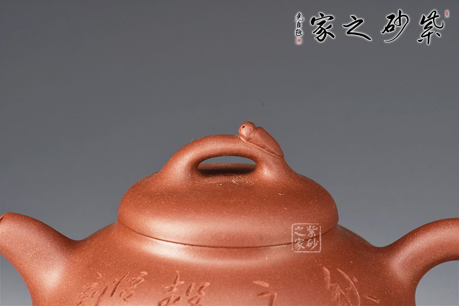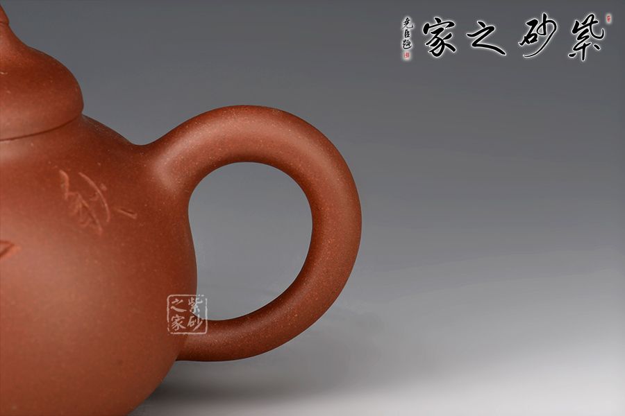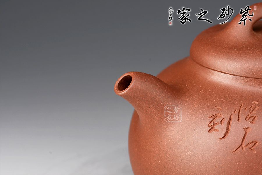 此壺壺身飽滿圓潤,線條流暢自然。一截樹枝,拿捏舒適稱手。壓蓋式,子母線嚴(yán)絲合縫,緊密貼合,氣密性良好。一彎流出水迅猛爽利。耳形端把,銜接精湛,線條流轉(zhuǎn),端握稱手。壺身刻繪“秋之聲”與秋意相呼應(yīng),更襯托了此壺的非凡氣質(zhì)。