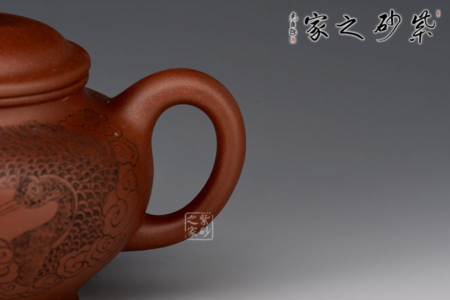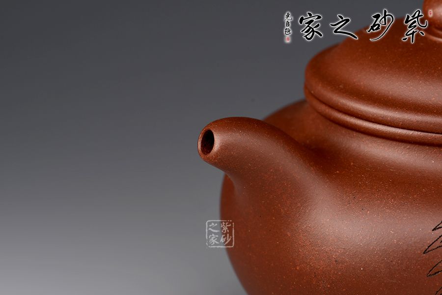 掇只壺是傳統(tǒng)器型中的一款,是無(wú)數(shù)藝人與壺友喜愛(ài)的款型之一,曾經(jīng)《宜興縣志》中提到過(guò)此壺:“一壺千金,幾不可得?!鼻Ы鹬畨?,可以說(shuō)是價(jià)值連城,稱得上是壺中之王了。此壺有著渾圓的壺身,半圓的壺蓋,圓鈕,線條流暢,比例得當(dāng),壓蓋略微鼓起,點(diǎn)線之間出魅力,子母線口蓋溫和嚴(yán)密,骨肉亭勻,簡(jiǎn)練大方,制作頗見功力。彎流嘴胥出,在端頭下壓,柔美之姿明顯,壺柄略微上抬之后優(yōu)雅滑落而下,形成一條圓潤(rùn)飽滿的弧線,樸雅大方。此壺?zé)o論自用或送人皆宜,值得推薦。
