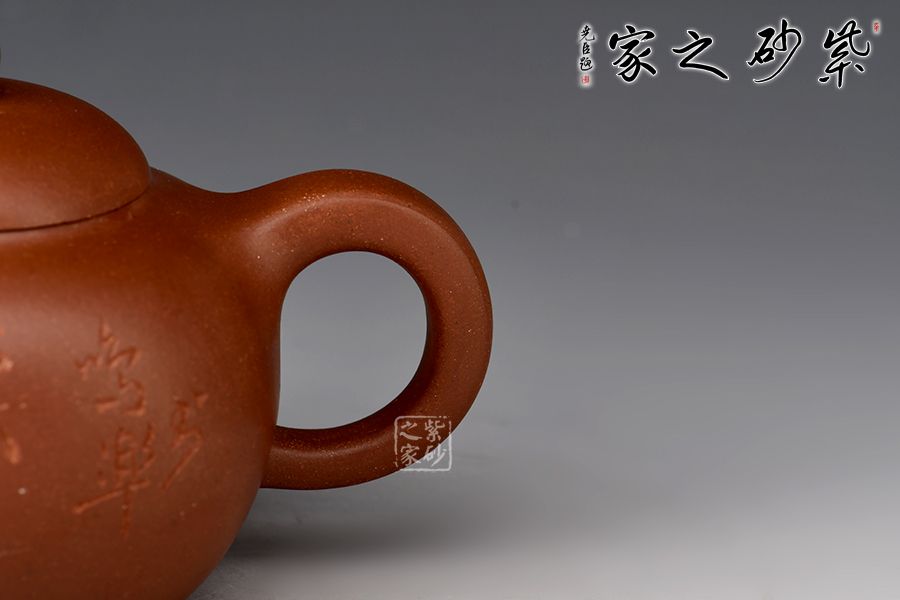 此壺壺身飽滿,氣韻不凡,一彎壺流挺翹而出,出水爽快,近耳形圈把拿捏舒適。珠型壺鈕扁圓可愛,壓蓋凸起,壺身由湯鳴皋老師自己刻繪,落筆不凡!整壺簡(jiǎn)約大氣,是一把賞藏皆宜的殺茶利器!