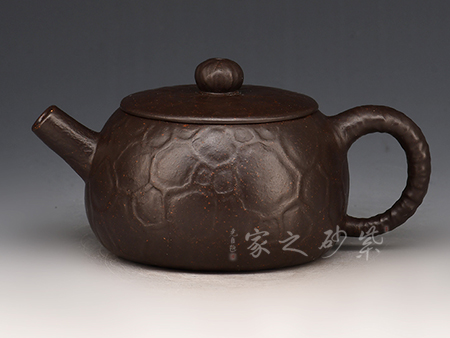 黑朱泥,是紫砂朱泥中的一種泥,是黃龍山礦層中間一層,稱為黑朱泥,此款泥料制作出來的紫砂作品,漂亮,好養(yǎng),把玩易上手