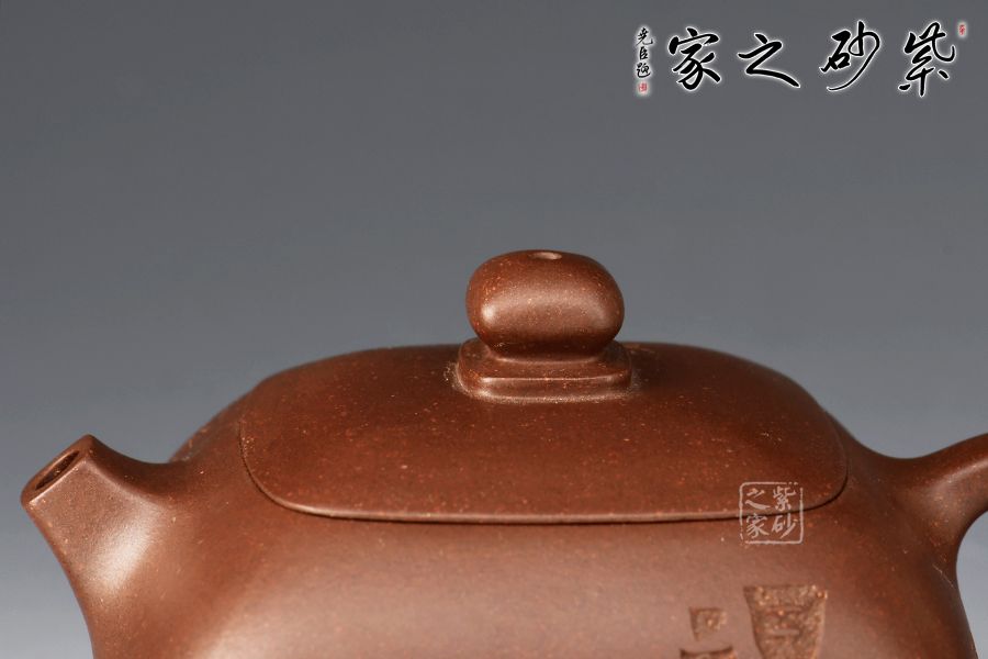 然而此款西施壺結(jié)合四方器型的特點(diǎn),方圓結(jié)合,小直流嘴出水暴爽,壺蓋和壺鈕亦呈四方形,倒把粗細(xì)有致,老紫泥制作,色澤古雅深厚,令人愛不釋手。