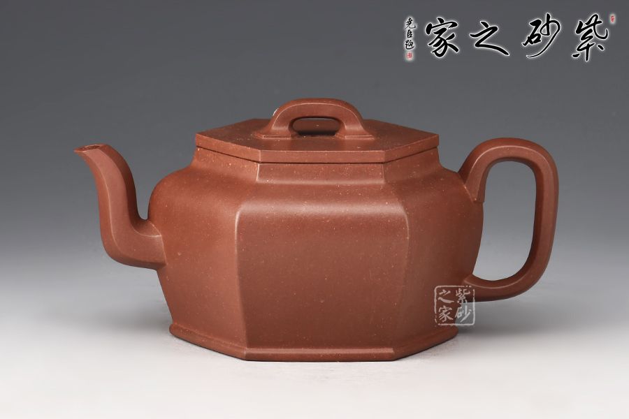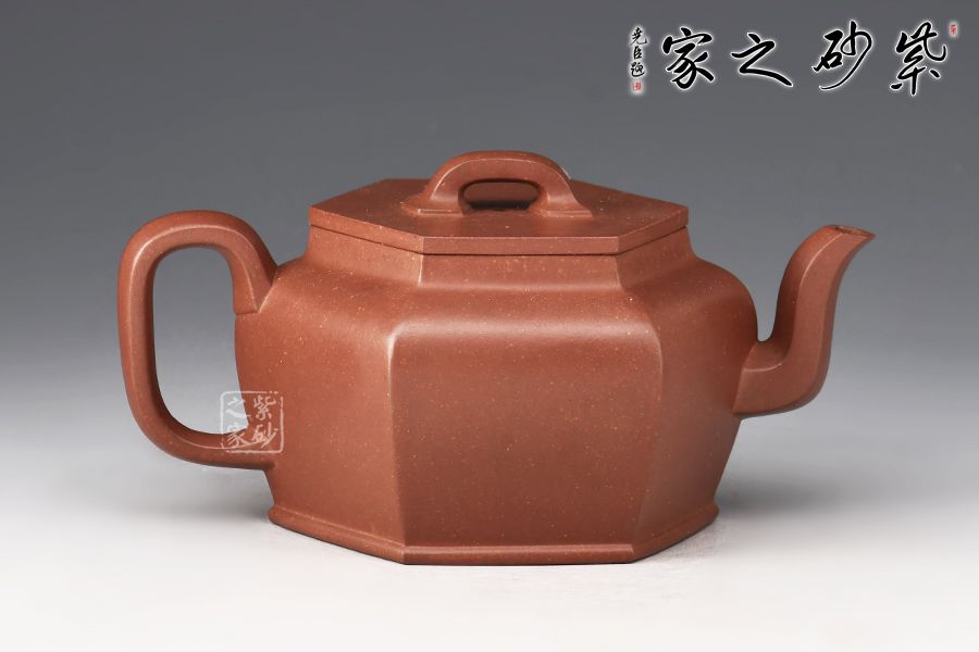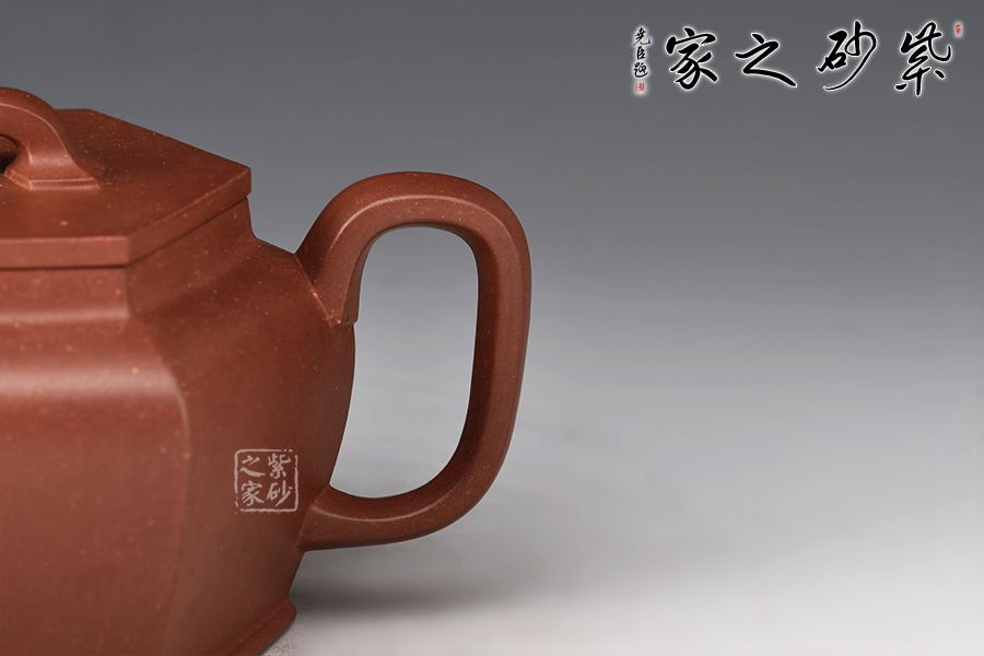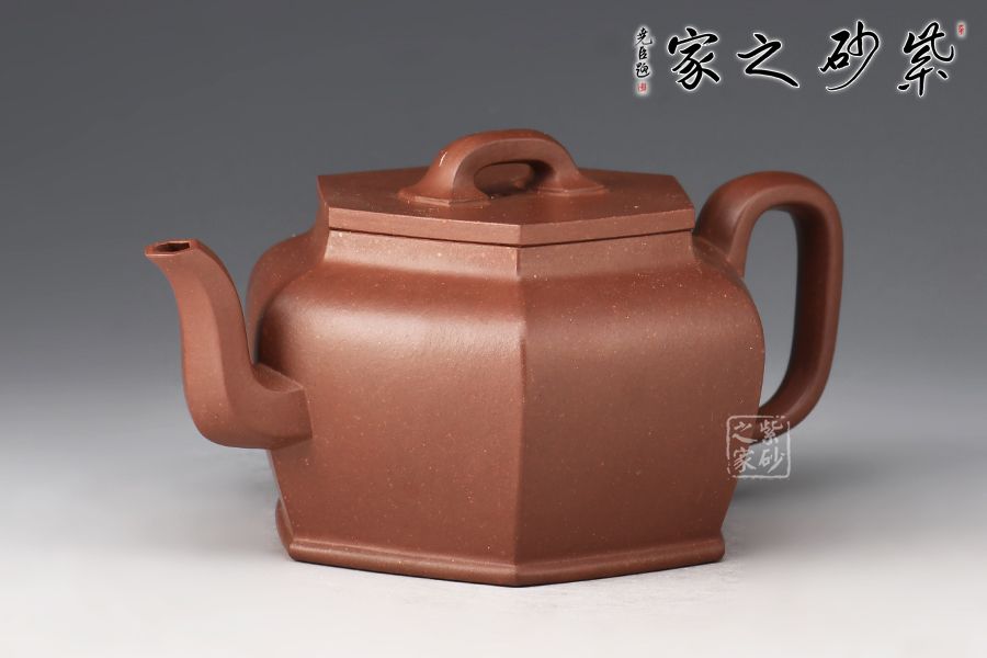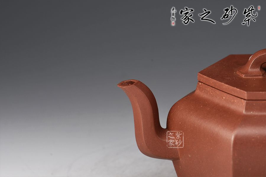整壺古樸典雅,柔和大方,不但有方器的挺秀,同時(shí)也有圓器的柔和,方中寓圓,圓中見(jiàn)方的特點(diǎn)著實(shí)讓人心中大喊妙哉。壺身被均等分為六等分,鈕、流、把皆以方器展現(xiàn),與壺身相呼應(yīng),整體協(xié)調(diào)有致,真正做到了線條流暢,輪廓分明,平穩(wěn)莊重的境界,是一款升值空間極大的作品。
