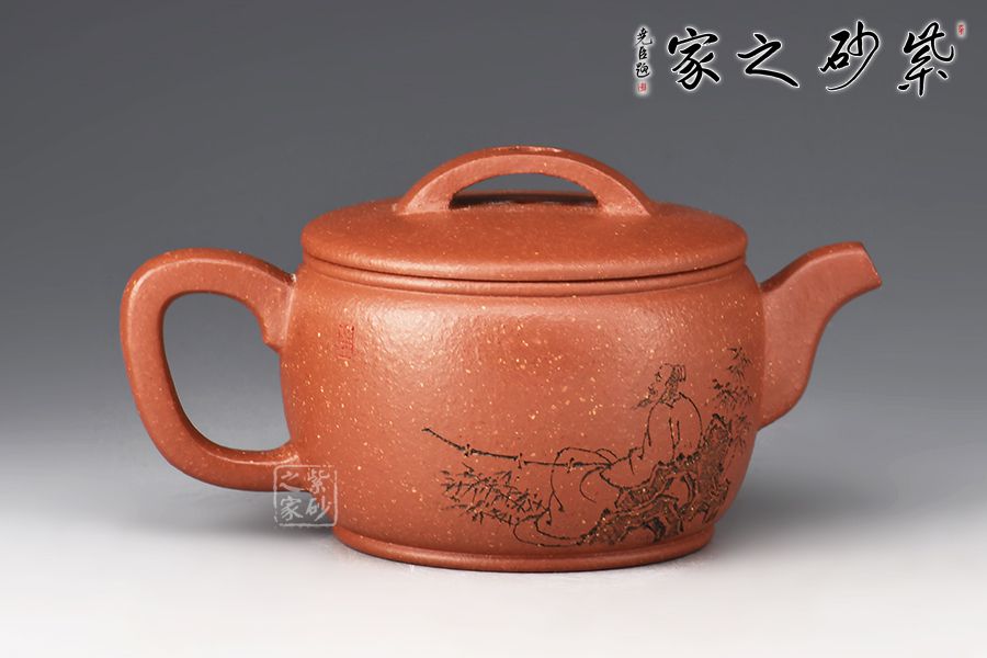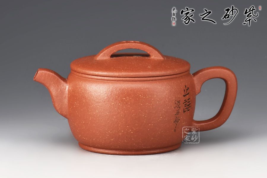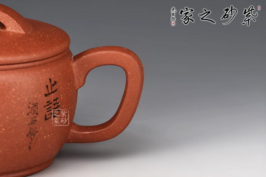 漢瓦屬于圓器中的經(jīng)典傳統(tǒng)器型,歷來(lái)多位藝人都有仿制此種款型,而此款漢瓦壺卻給人留下深刻印象!此壺圓筒形壺體,流與把相呼應(yīng),蓋平,橋式鈕,鈕面陰刻梅花紋樣;大口蓋,特別實(shí)用,紅降坡泥制作,色澤暗紅雅致,氣密性好,此壺工藝講究,雋永耐看!