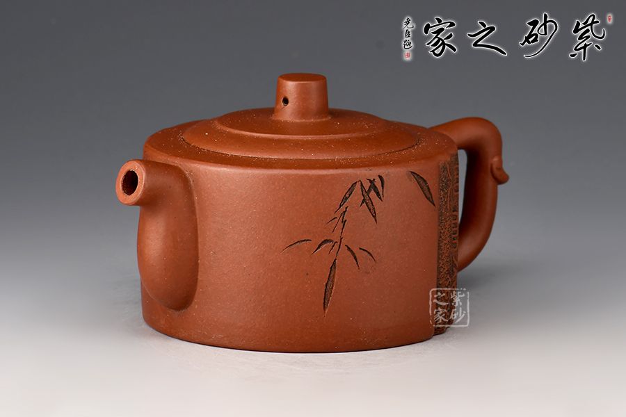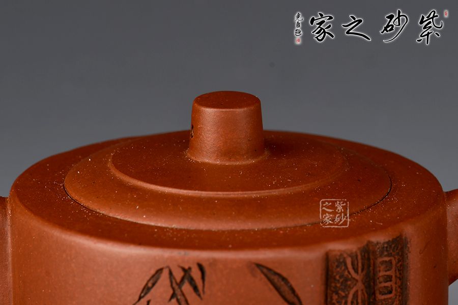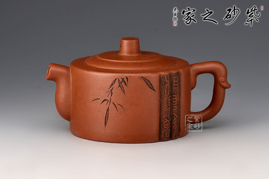 此壺圓身直筒,古樸而穩(wěn)實(shí),嵌蓋嚴(yán)密,天衣無(wú)縫,蓋面微凸,圓柱鈕,肩線溫和,彎嘴蜿蜒而出,且流基寬,嘴口圓,出水暢。耳形端把帶飛,端握舒適。壺蓋口沿描金裝飾,壺身刻繪“人間有味是清歡”整個(gè)壺形線條流暢優(yōu)美,品茶欣賞之優(yōu)品。