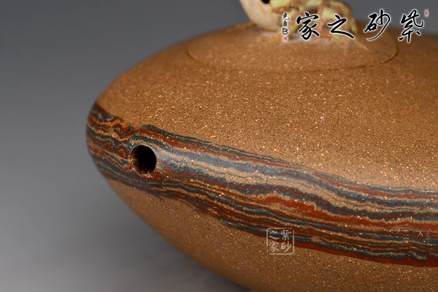 此壺匠心獨(dú)運(yùn),采用絞泥工藝,此壺已經(jīng)不僅僅是一把喝茶的紫砂壺,而是一件藝術(shù)品!