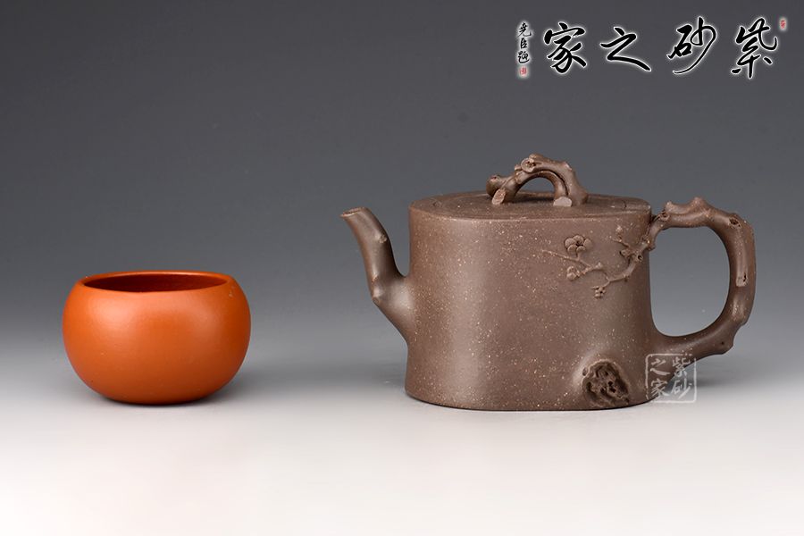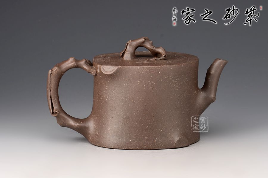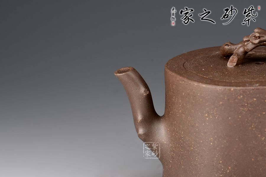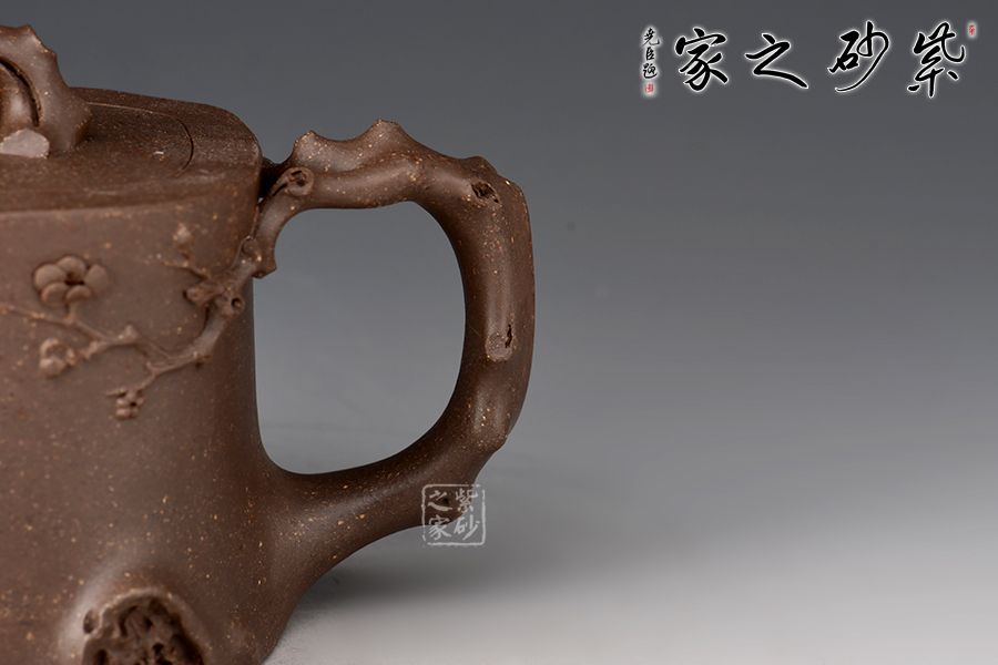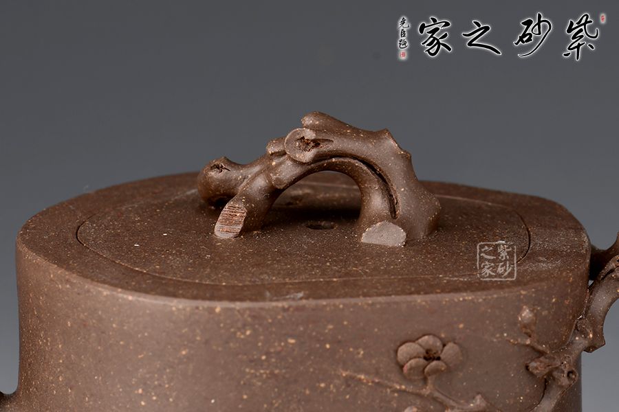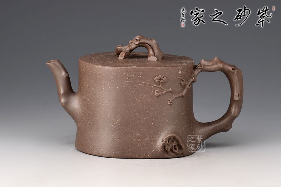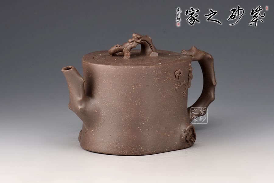 梅樁,以梅入形,壺身、流、把、蓋全部是用極富生態(tài)的梅樁、樹(shù)皮及纏枝組成,形態(tài)自然而富含力度。壺身成樹(shù)樁形,身上斑節(jié)老練逼真。壺嘴壺把為梅樁衍生出的枝干,伸展自然,有如自然長(zhǎng)成,仿生性極強(qiáng),充滿了生命的活力。此壺做工精細(xì),氣度非凡,實(shí)用性觀賞性都很好,是把玩收藏之佳作!