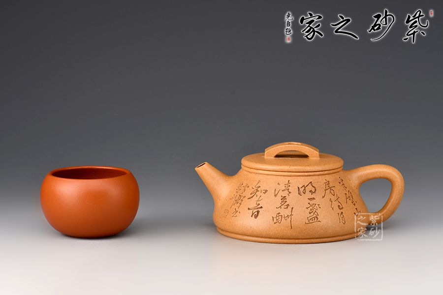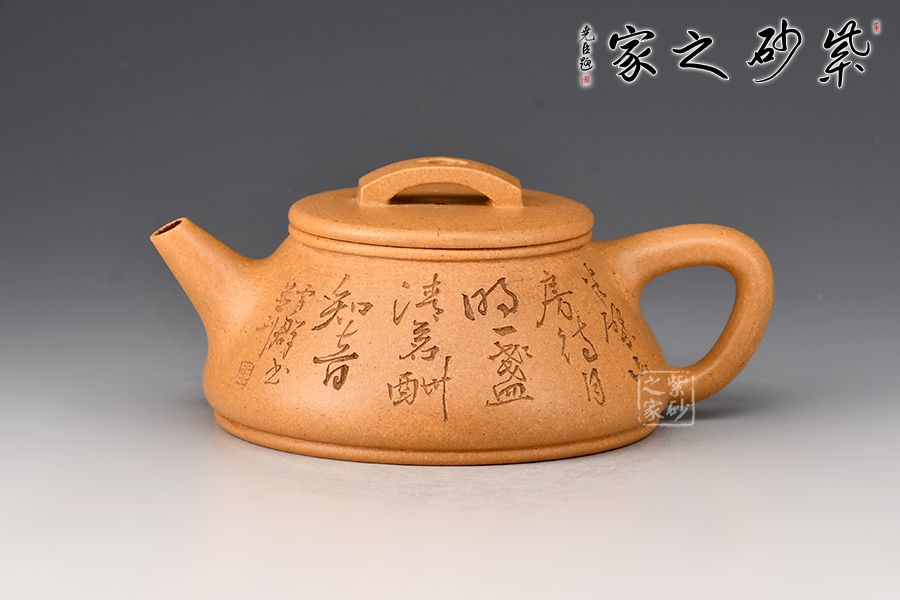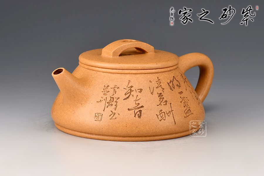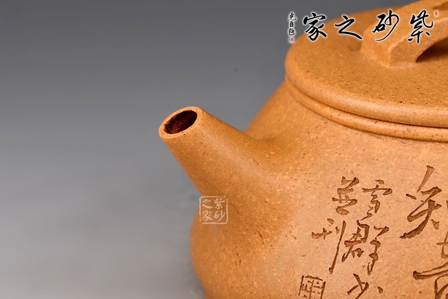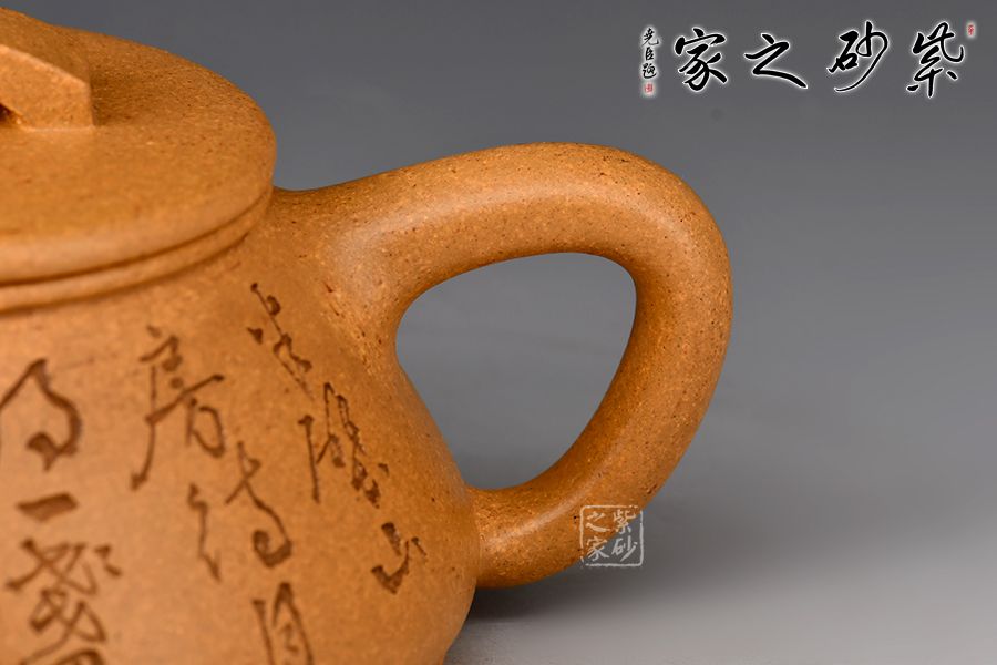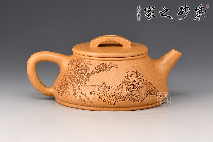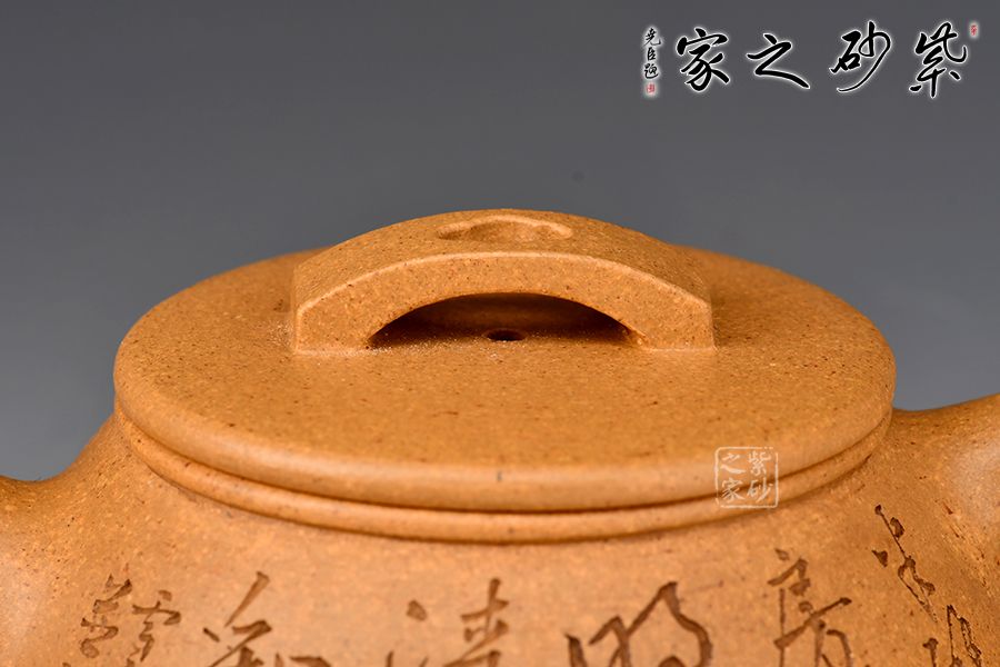 刻繪才女邵雪群老師自制自銘:半壁山房待月明,一盞清茗酬知音。整壺泥色古樸雅致,加之刻繪,文人氣十足!