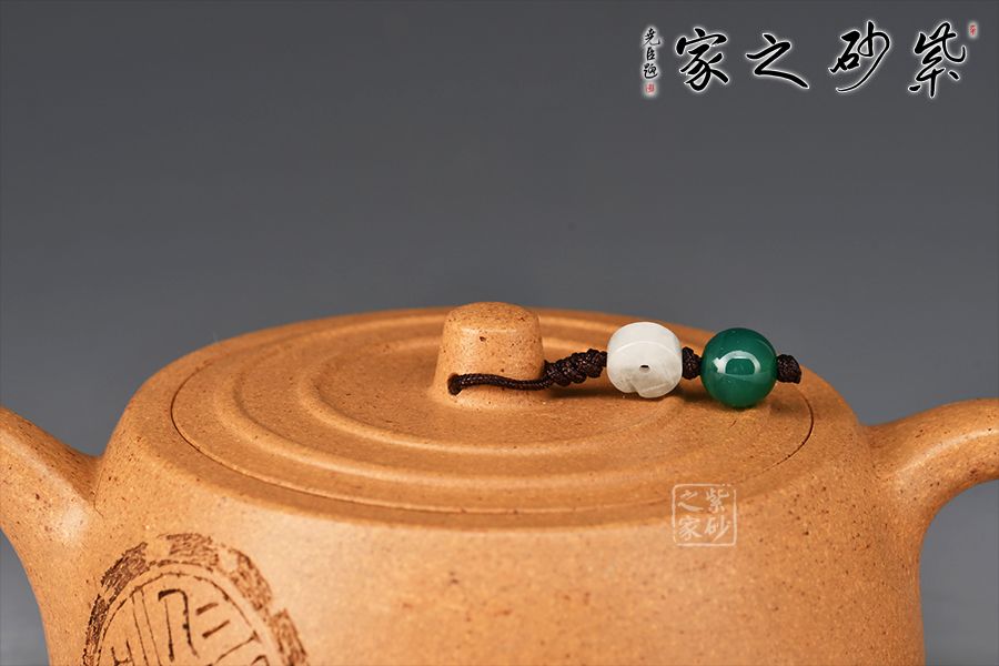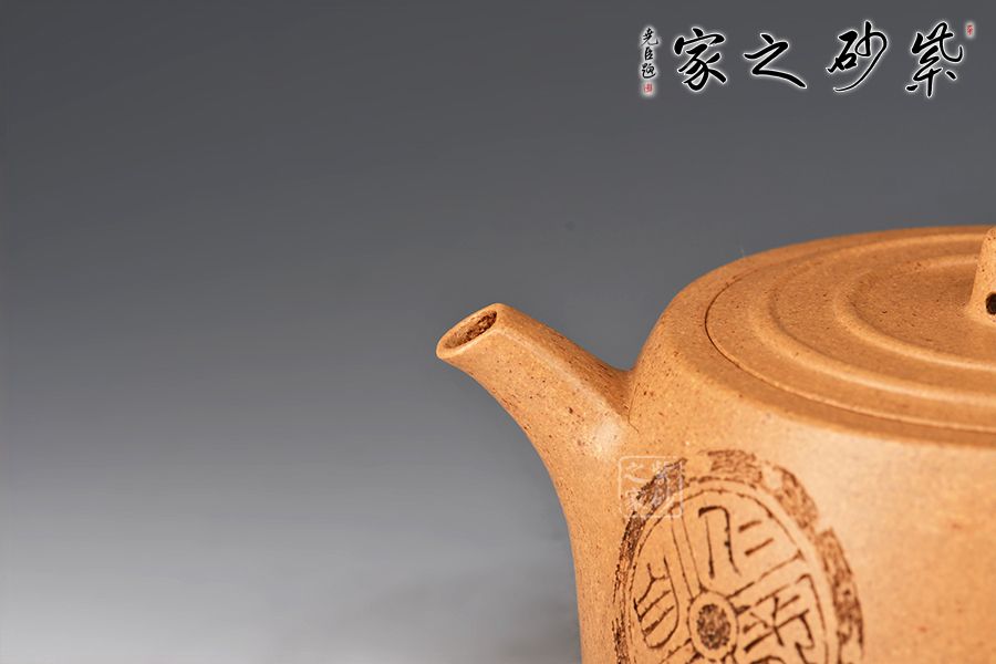 井欄壺,經(jīng)典器型。柱形鈕設(shè)計,過渡平緩,平嵌蓋,大口蓋。彎流自壺肩處胥出,細(xì)致柔美。
