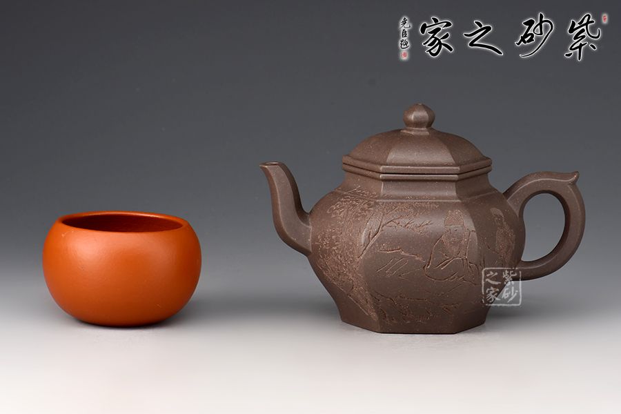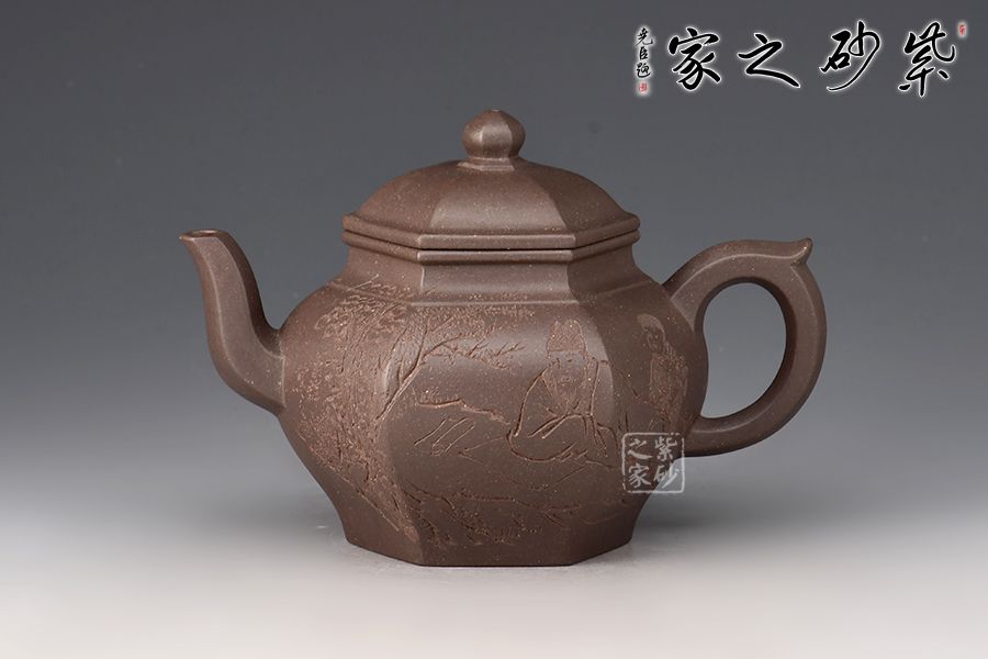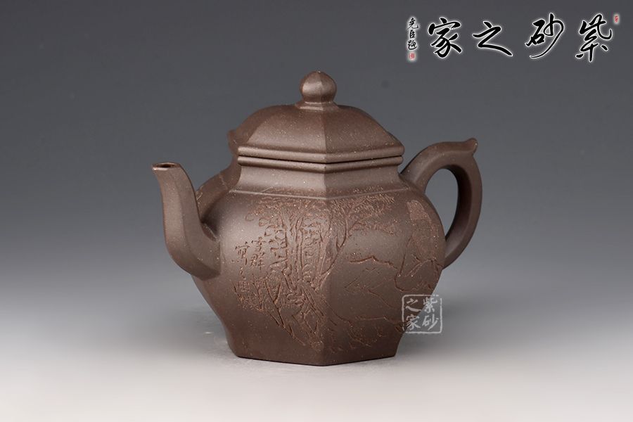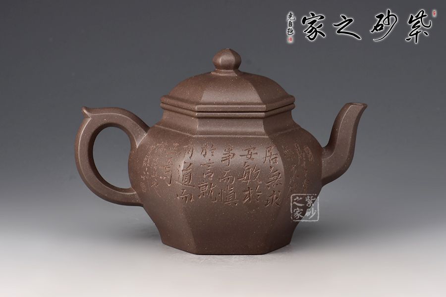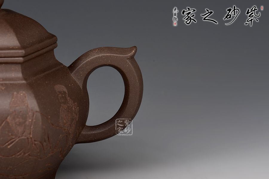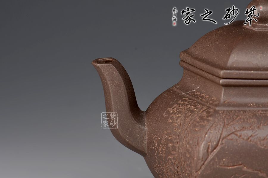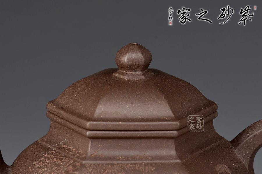 宮燈壺是紫砂壺中的經典。宮燈,是指古代宮廷用燈,紫砂以其為原型,不僅因其造型美觀,更取其奢華富貴、興隆和吉祥之意。此宮燈壺以六方呈現(xiàn),線條順滑,造型別致,對于做工要求極高。而此壺的六方接近,輪廓清晰,線條鮮明有力,比例協(xié)調,對稱工整。