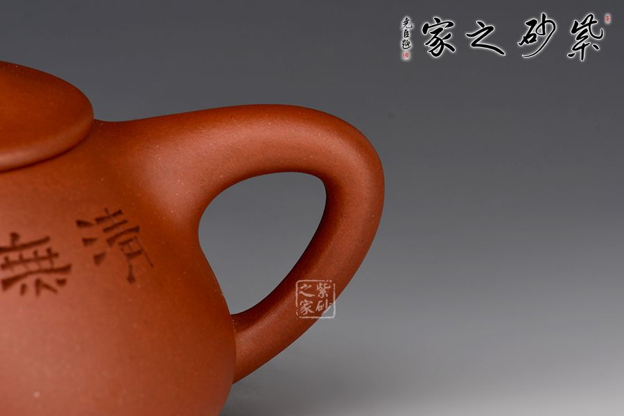 景舟石瓢壺為大師顧景舟將傳統(tǒng)的石瓢壺形制略作改良制作而成,比起以往的石瓢壺,獨有一番風味。橋鈕細膩,拿捏方便,鈕孔形成一個飽滿規(guī)整的扁圓,足見做工精細。平蓋壓口,從蓋沿線可以看出壺蓋質薄而形堅,且略大于壺口,形成完整的鎖口之勢,氣密性極佳。